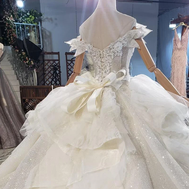Special Offer HTL1839 فاخر مطرز بالخرز كريستال لؤلؤ فستان الزفاف 2020 رقبة V كم قصير فستاين سهرة/فساتين الحفلات Discount 55% Today!