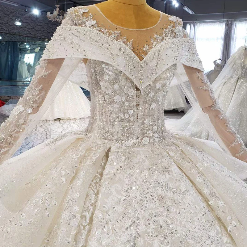 Special Offer فستان زفاف فاخر ومثير موديل HTL1998 مزين بالكريستال ومزين بالخرز على شكل حرف V لعام 2021 للنساء مزود بأربطة من الخلف بأكمام طويلة Discount 55% Today!