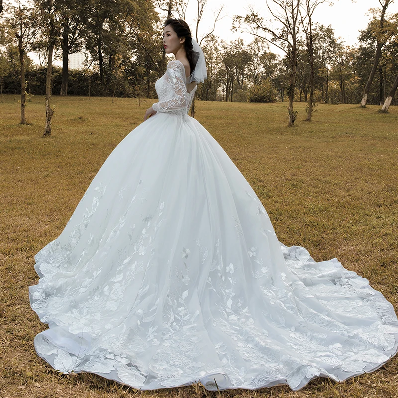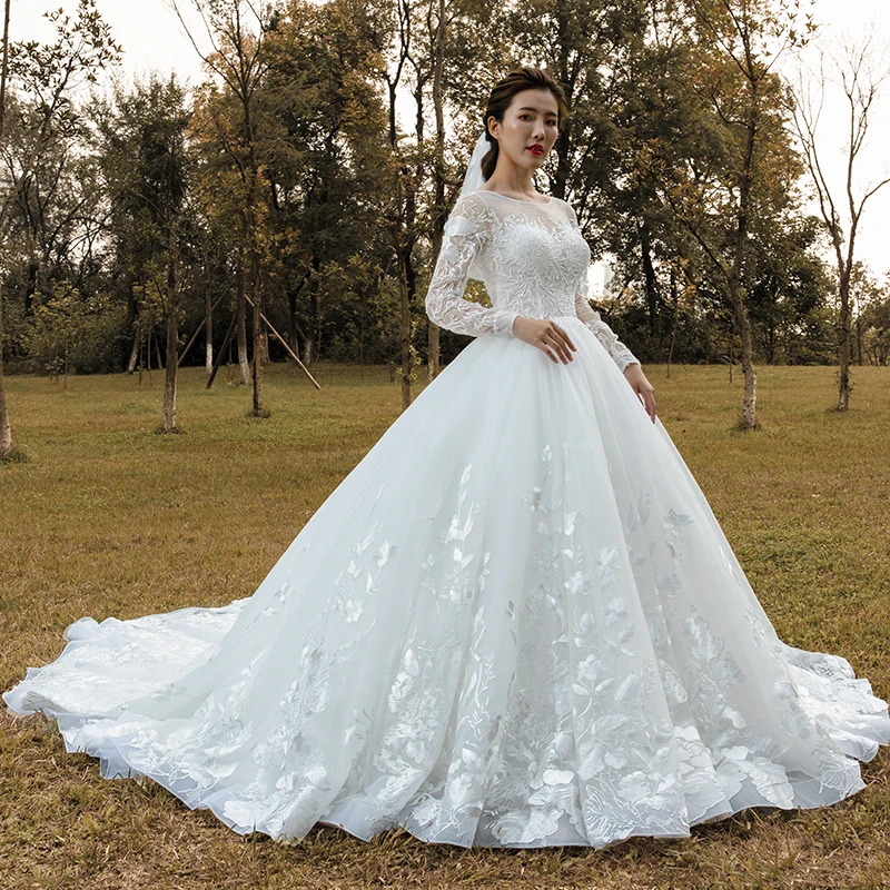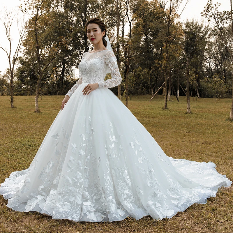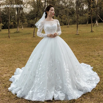 Special Offer فستان زفاف فاخر من J67029 باللون الأبيض الفاتح مع الحجاب على شكل حرف O والرقبة طويلة الأكمام زين الزفاف 2020 رداء دي ماري Discount 56% Today!