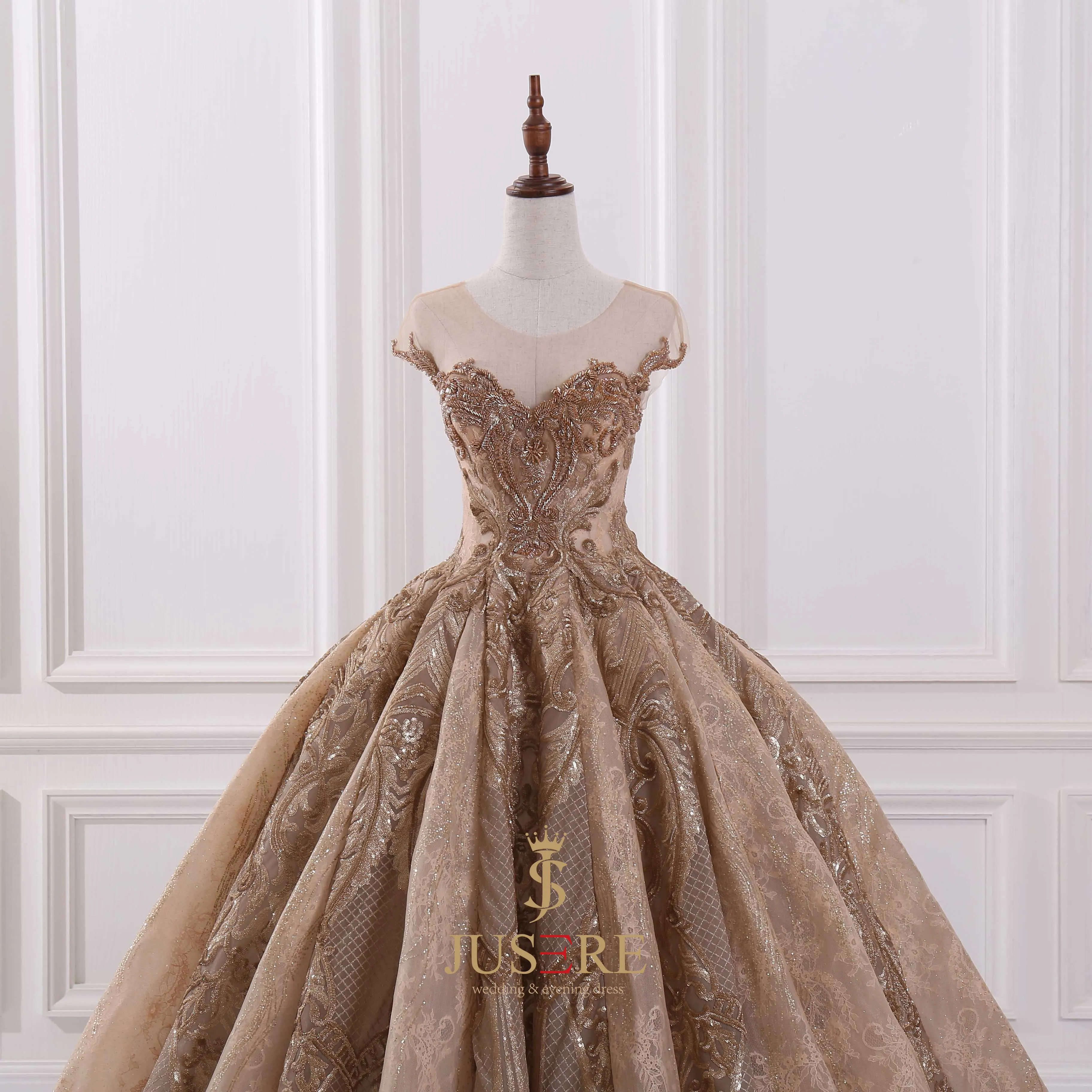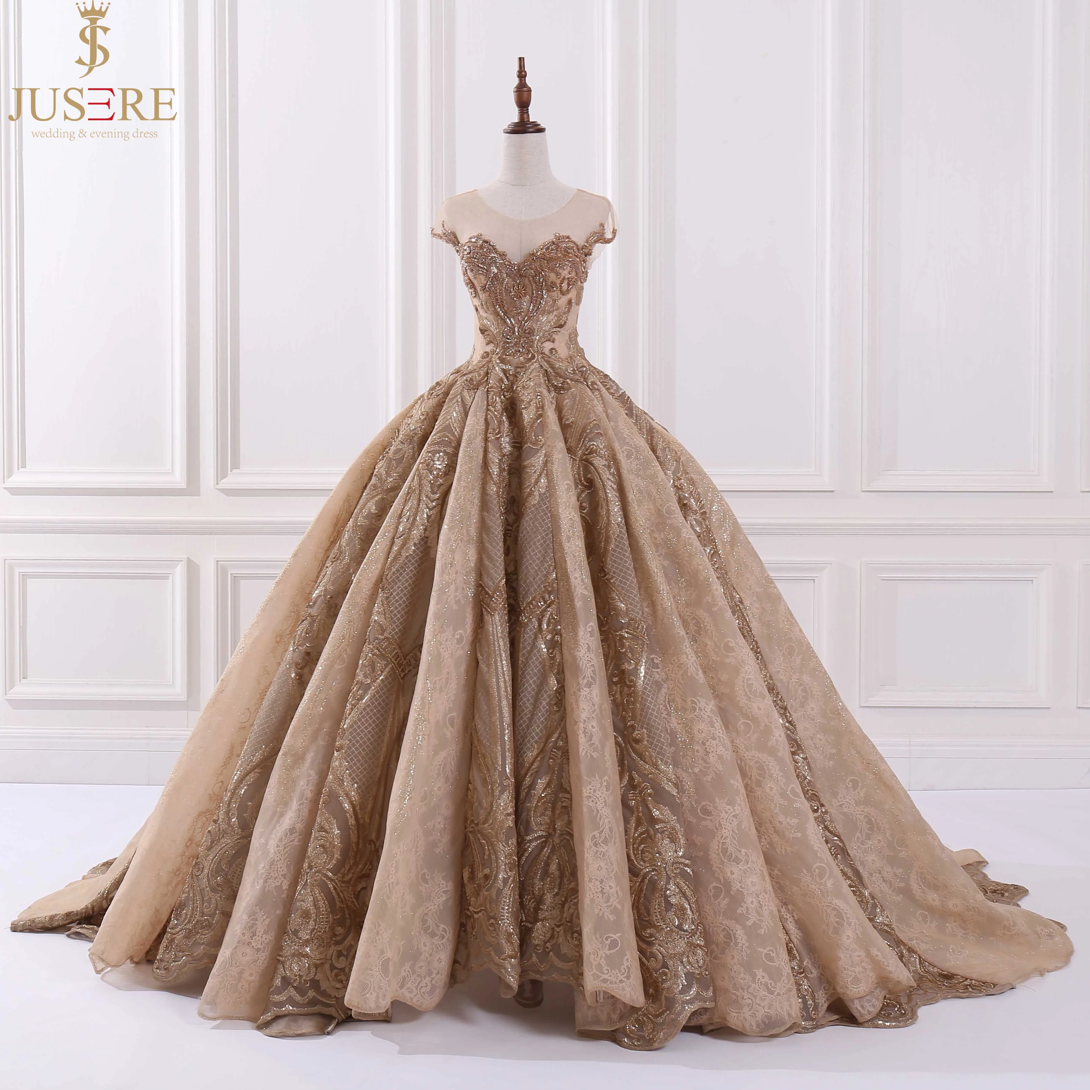 Special Offer فاخر Jusere الذهبي الكرة ثوب الترتر مطرز فستان سهرة بلا أكمام فساتين لحضور الحفلات الموسيقية مساء ثوب حفلة Discount 0% Today!