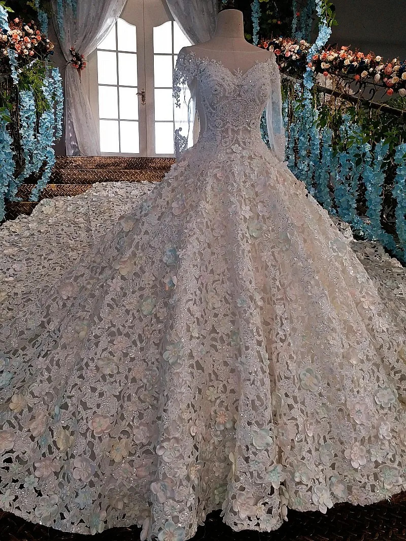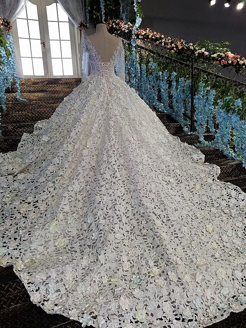 Special Offer LS00152 فستان زفاف فاخر لحفلات الزفاف كرة مطرزة ثوب طويل الأكمام الدانتيل ثوب زفاف الأميرة Vestidos دي Noivas صور حقيقية Discount 49% Today!