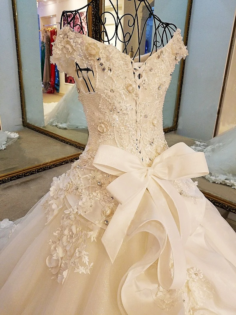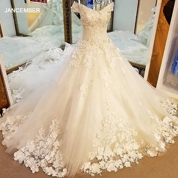 Special Offer LS55585 فستان الزفاف الدانتيل حتى الظهر قلب الكرة ثوب فاخر كريستال فستان الزفاف قطار طويل صور حقيقية الترتر فستان Discount 47% Today!