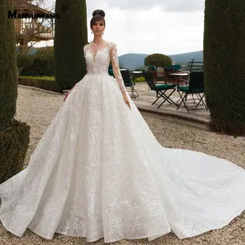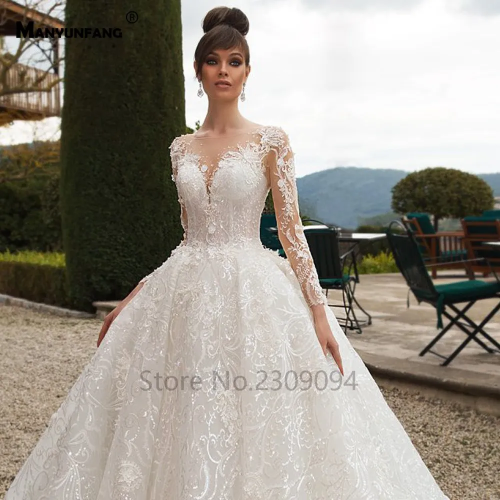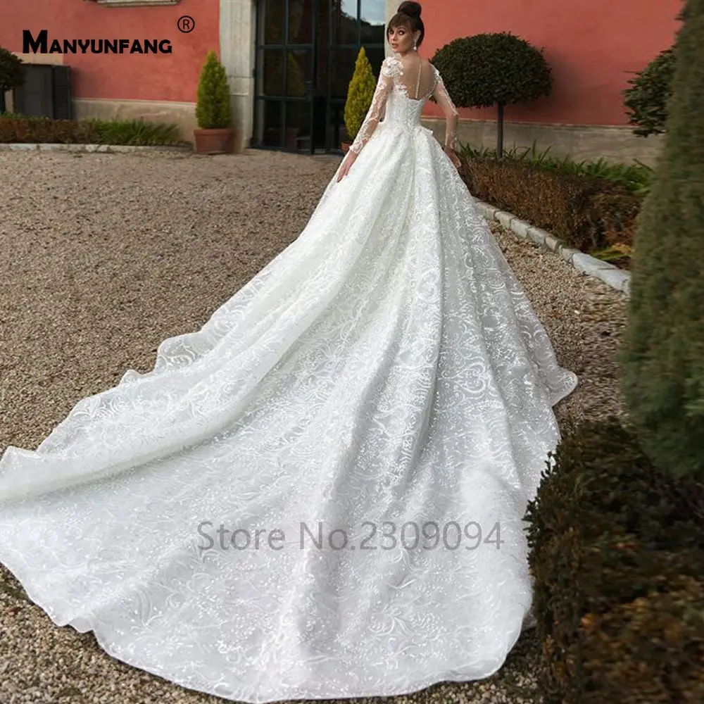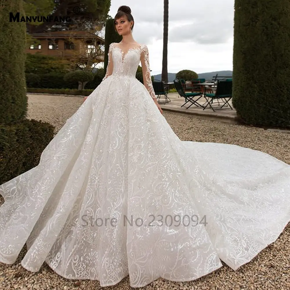 Special Offer Manyunang شفاف الظهر الزفاف فستان بأكمام طويلة Abendkleider الفاخرة 2020 قطار كبير Abito Sposa نيرو الدانتيل الأفريقي الزفاف D Discount 0% Today!