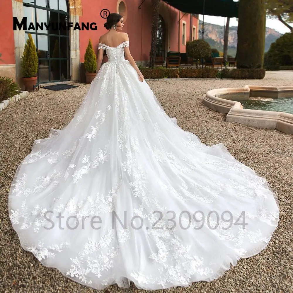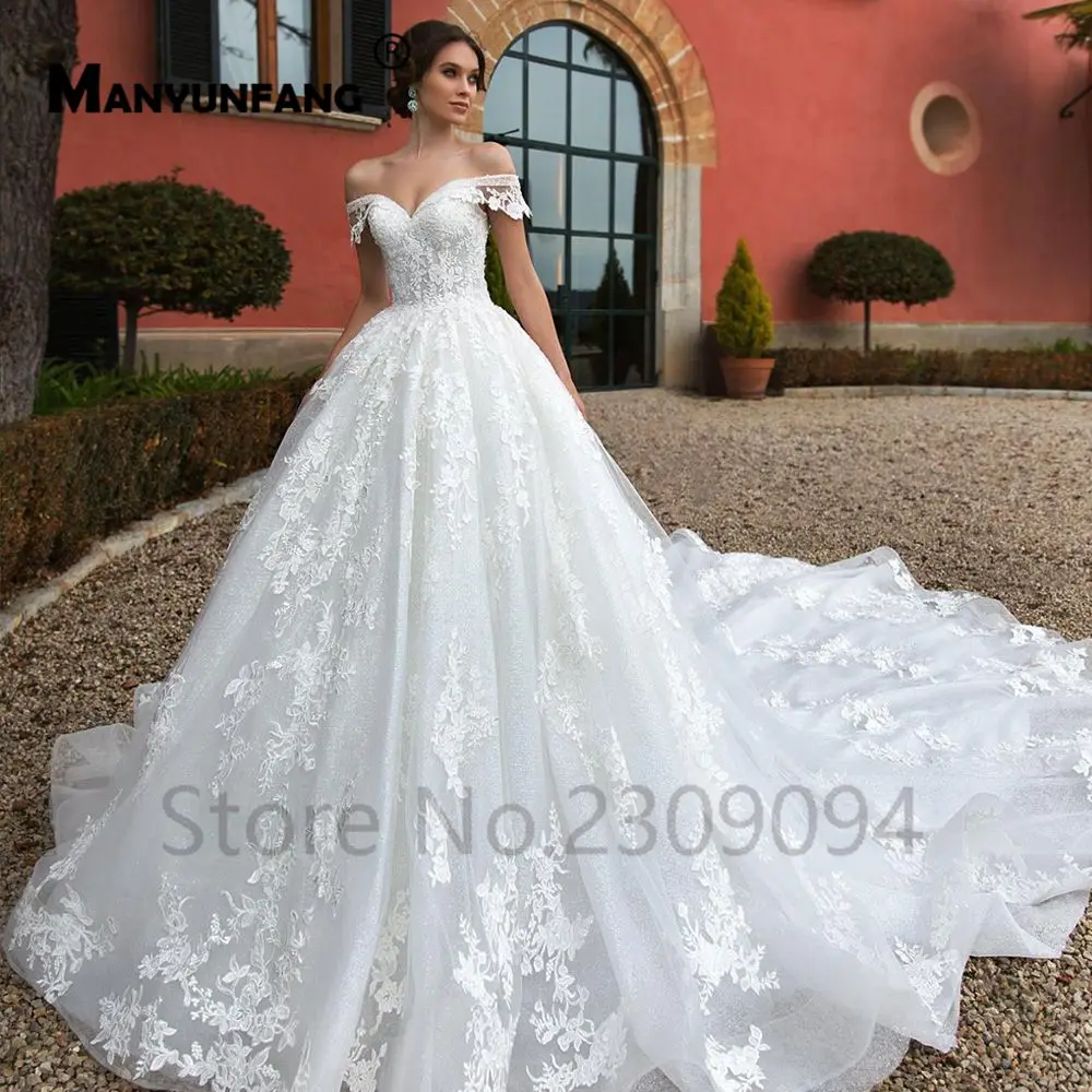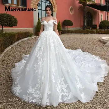 Special Offer Manyunang فستان زفاف فاخر بدون الكتف رداء Noiva ترتر تول الأورجانزا اللؤلؤ الإمبراطورية Hochzeitskleid فستان قطار كبير Discount 0% Today!
