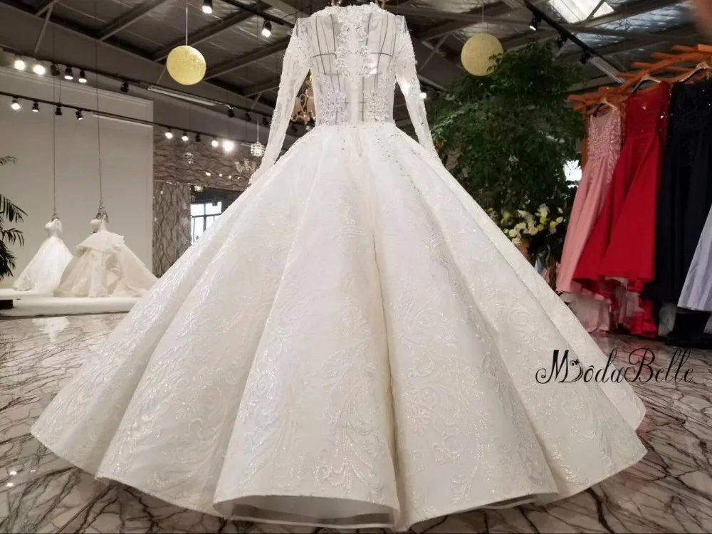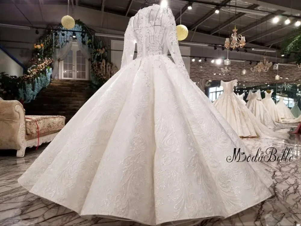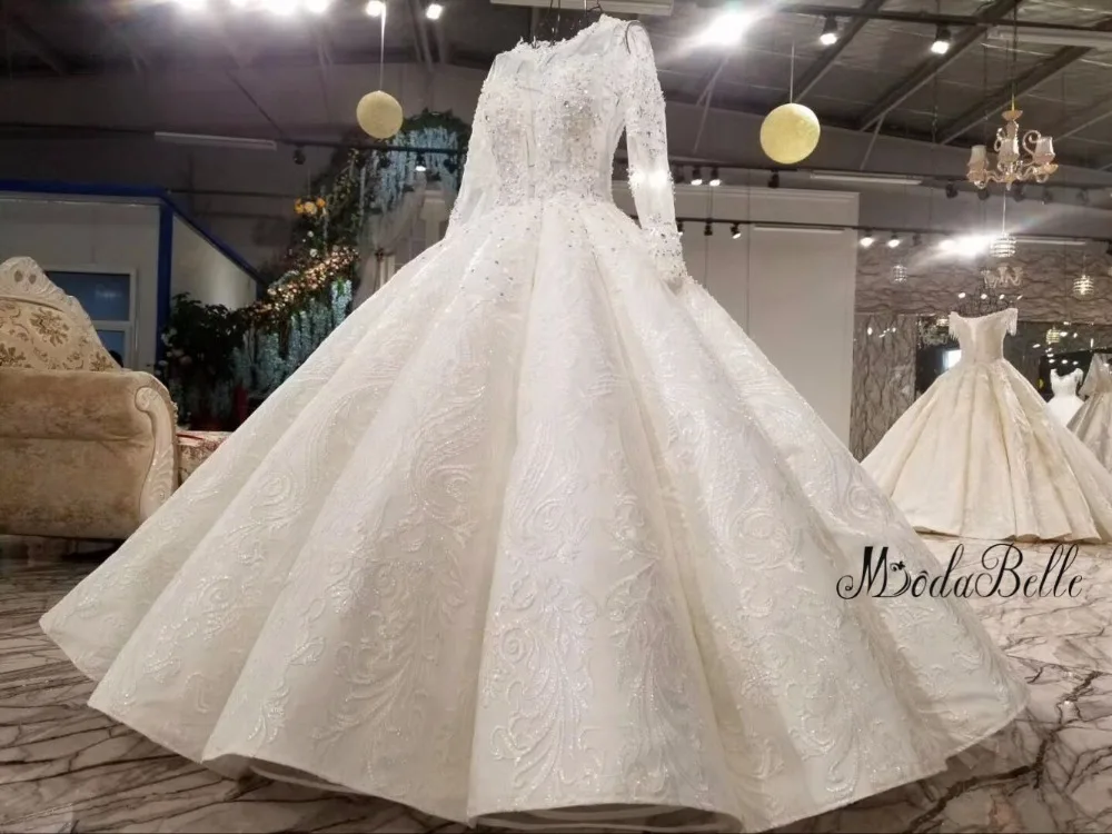 Special Offer Modabelle الفاخرة 2018 فستان الزفاف خمر طويلة الأكمام انظر خلال الدانتيل أعلى الطية الكرة ثوب Vestido دي Novia فساتين العرائس Discount 0% Today!