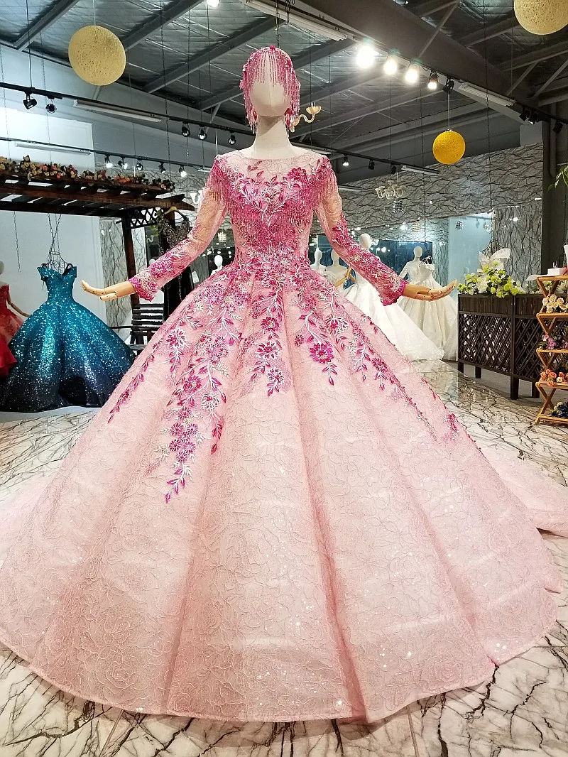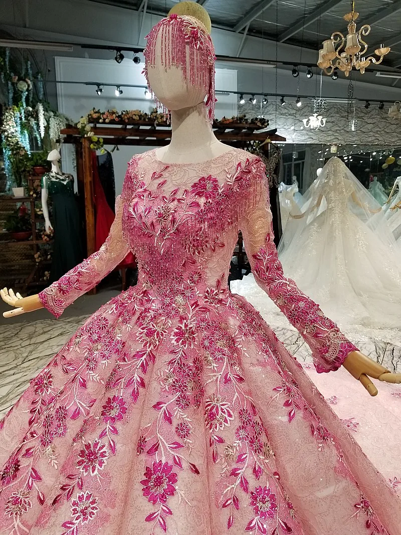 Special Offer فستان زفاف وردي فاخر شفاف من خلال الدانتيل حتى الظهر Discount 0% Today!