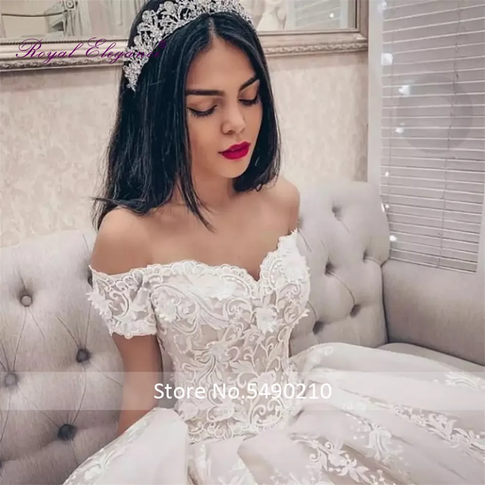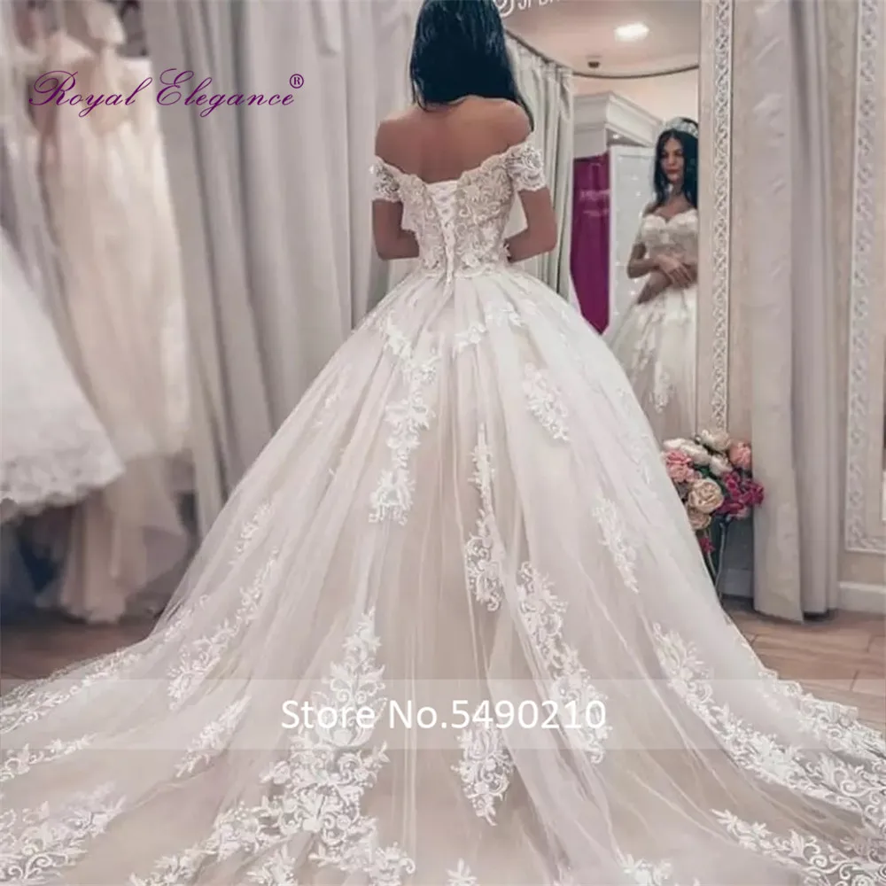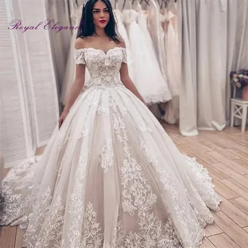 Special Offer الملكي أناقة الكرة ثوب فستان زفاف بصدر مفتوح قبالة الكتف كم ملابس الزفاف تول الدانتيل زينة فساتين الزفاف Discount 0% Today!