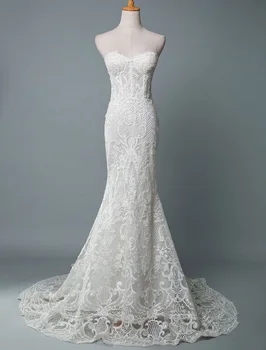 Special Offer دانتيل فستان الزفاف حورية البحر حبيب بلا حمالات طول الأرض مع تراين فساتين زفاف Discount 0% Today!