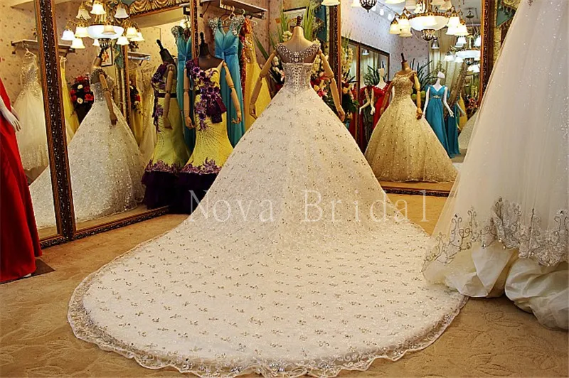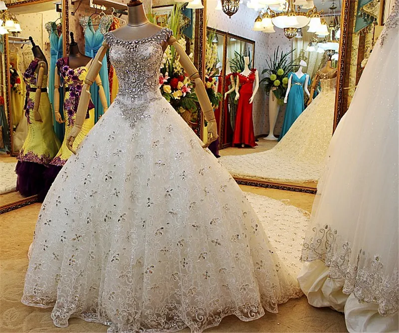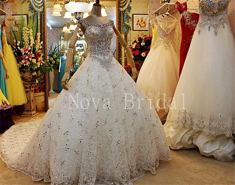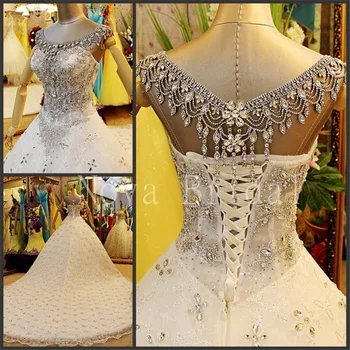 Special Offer العرف فاخر الرباط فستان الزفاف سكوب الخرز بلورات الدانتيل متابعة الثقيلة قطار طويل فساتين الزفاف Vestido دي Noiva IZ182 Discount 0% Today!