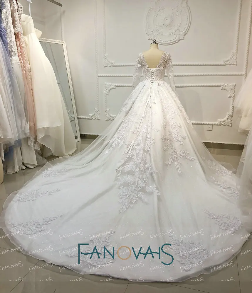 Special Offer الفاخرة الأبيض الزفاف فساتين طويلة الأكمام الدانتيل الكرة ثوب فستان زفاف Vestido دي Novia رداء دي خطاباتخطابهزوجات خمر كوتور اللباس Discount 30% Today!