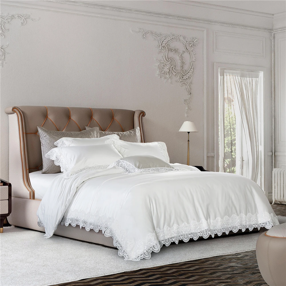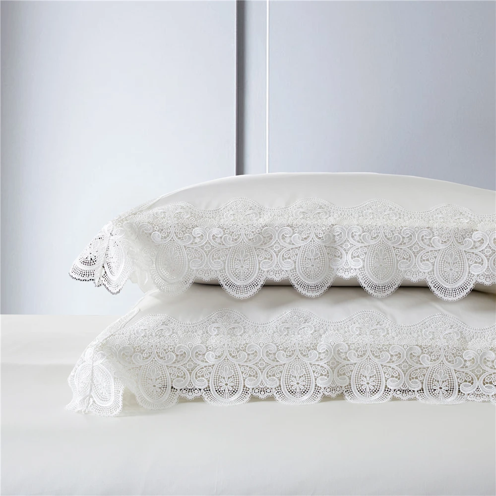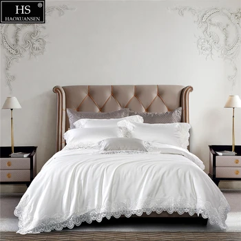 Special Offer 100 S القطن المصري الأبيض الفاخرة الملكي رومانسية الدانتيل الفتيات طقم سرير 4 قطعة الملك سرير ملكة ورقة مجموعة غطاء لحاف وسادة شمس Discount 0% Today!