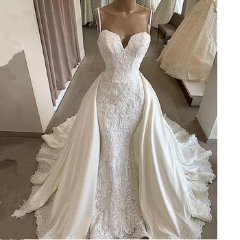 Special Offer فستان زفاف فاخر 2 في 1 حورية البحر مطرز بالخرز 2020 مثير بدون ظهر زي العرائس الزفاف مع ذيل قابل للانفصال رداء De Mariee Discount 50% Today!
