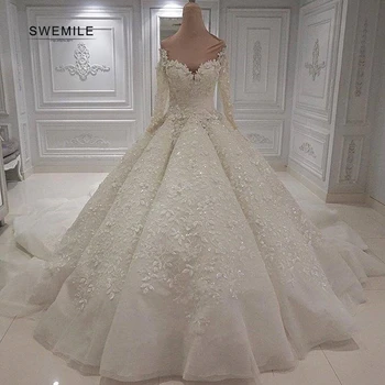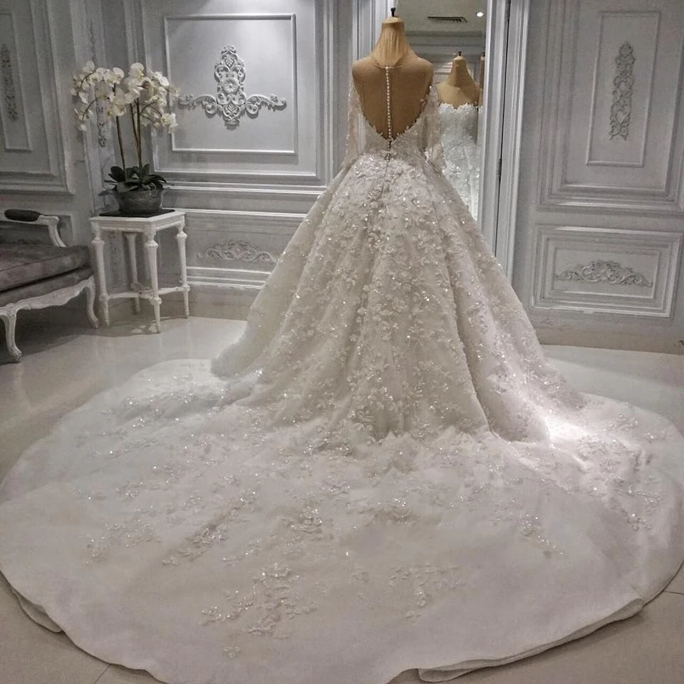Special Offer فساتين زفاف فاخرة طويلة مزينة بالكريستال موديل 2019 فساتين زفاف مثيرة مكشوفة الظهر ورقبة على شكل حرف V مزينة بالدانتيل بأكمام طويلة Discount 32% Today!