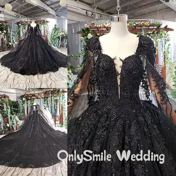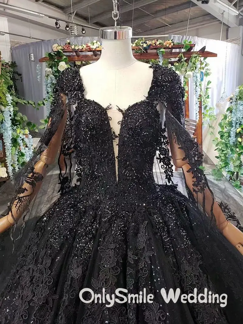 Special Offer فساتين زفاف سوداء كم طويل زي العرائس فستاين سهرة/فساتين الحفلات للمرأة أنيقة 2019 الدانتيل بريق الخرز مسلم Vestido De Novia Discount 0% Today!