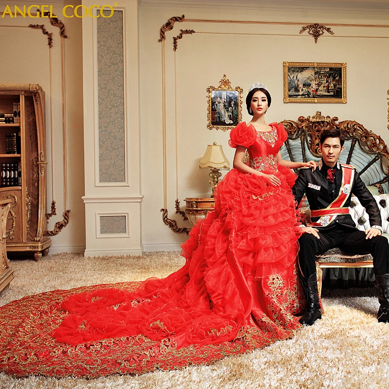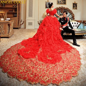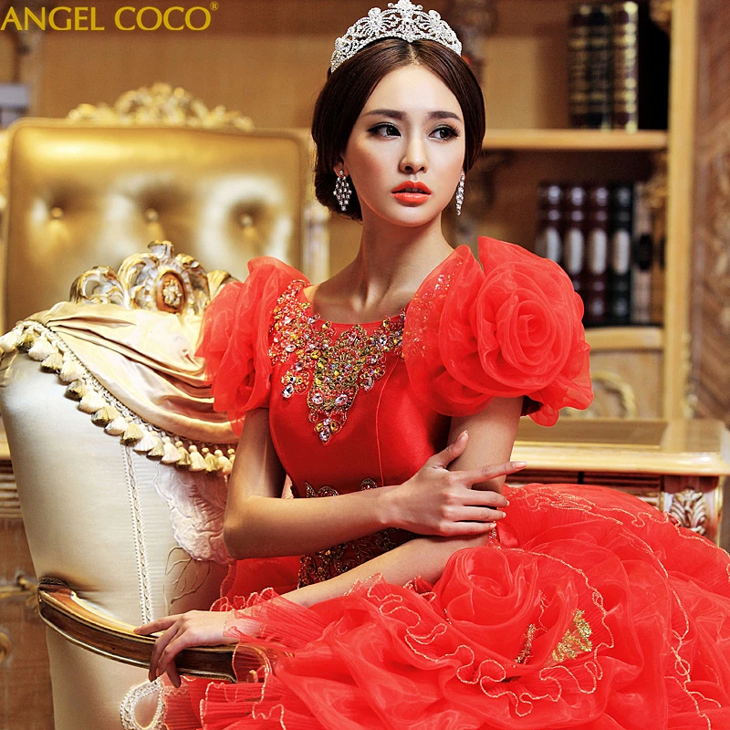 Special Offer فاخر الملكي دبي كريستال حجر الراين الأحمر فستان الزفاف منتفخ ثلاثية الأبعاد زهرة ثوب زفاف الزفاف فستان عروس فستان الزفاف 2020 فساتين فستان فست... Discount 20% Today!