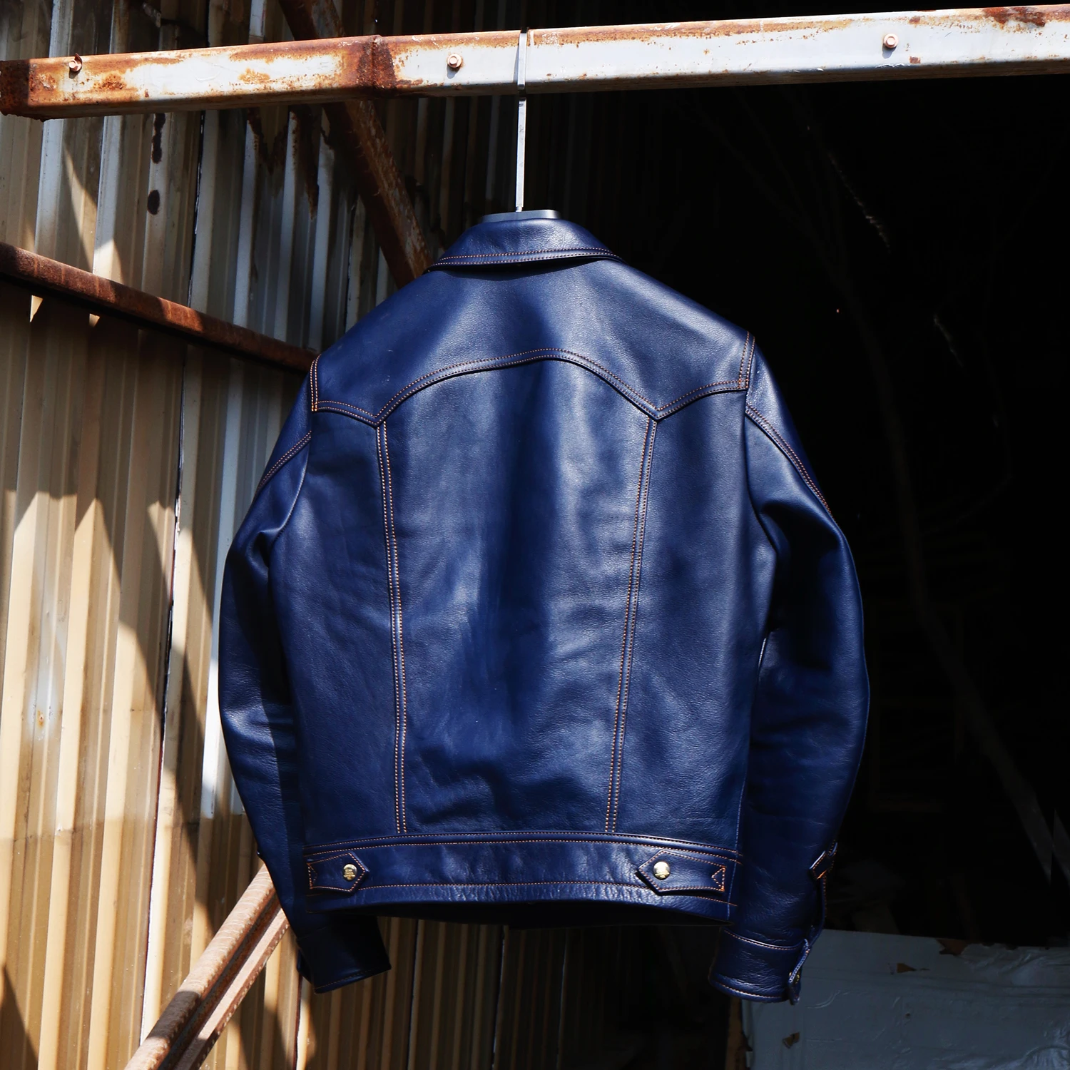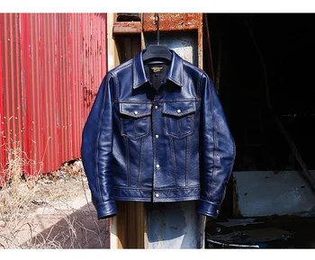 Special Offer سنة! شحن مجاني. 2020 معطف جديد ، كلاسيك عادية 507 النيلي المدبوغة جلد البقر سترة ، 1.1 مللي متر جلد طبيعي أبلى ، موضة سليم Discount 11% Today!