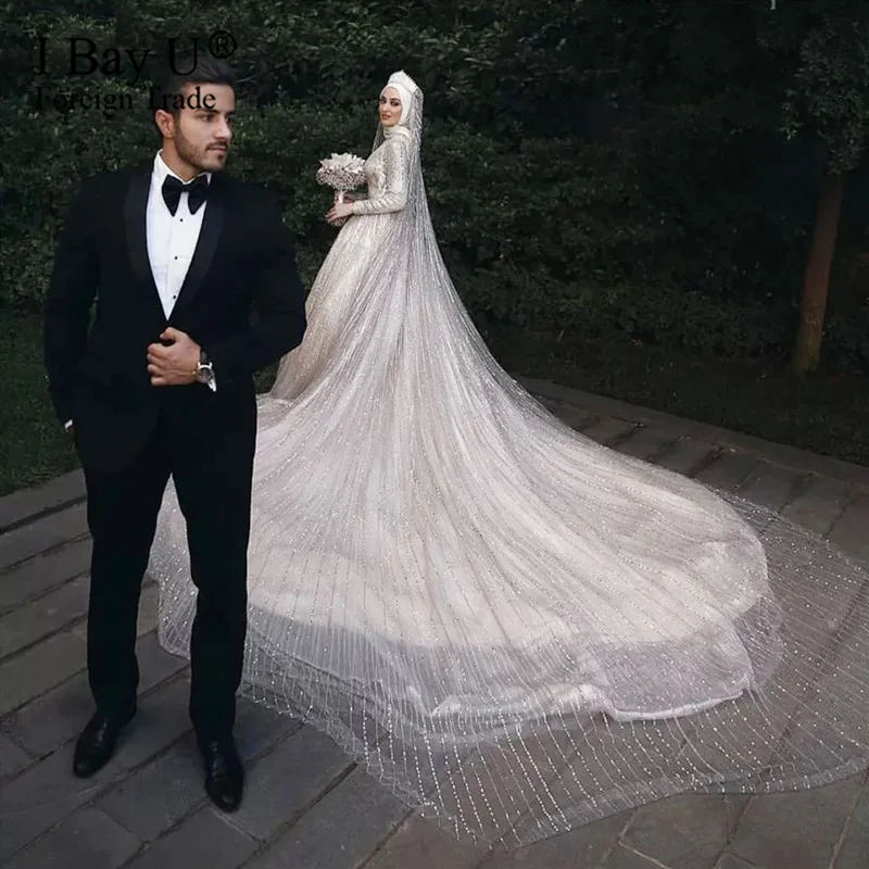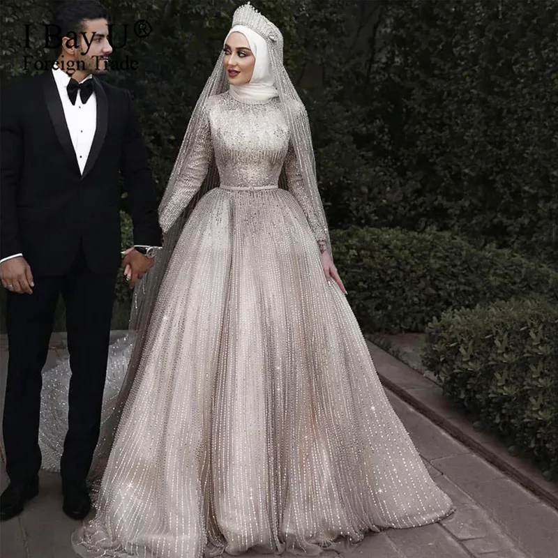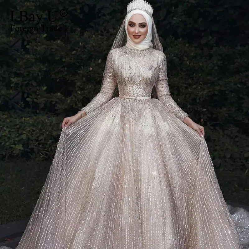 Special Offer فساتين زفاف إسلامية متألقة كاملة مطرز بالخرز 2020 أنيقة A خط طويل الأكمام خمر فستان زفاف فاخر مع الحجاب Discount 0% Today!