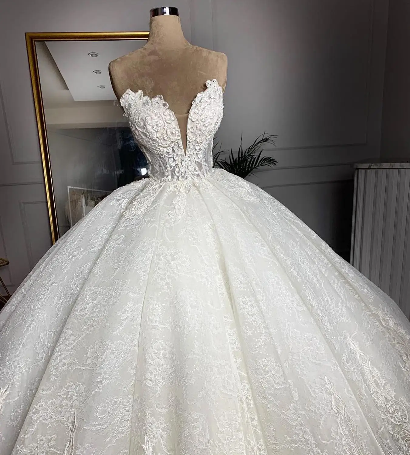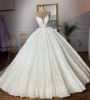 Special Offer فستان زفاف مثير بدون حمالات دانتيل 2020 حفلة أميرة رقبة على شكل V مزين بزينة فساتين زفاف رداء De Mariee Castle Mariage Discount 30% Today!