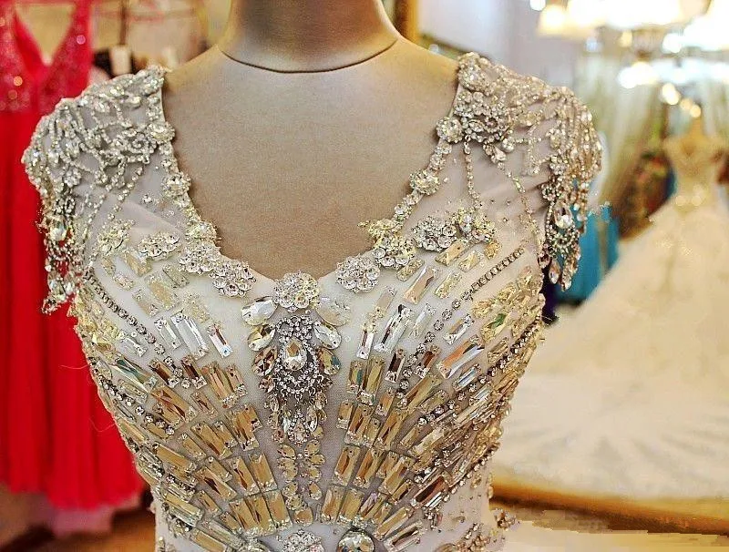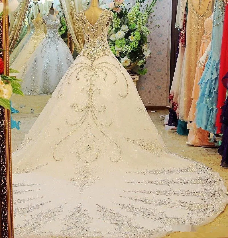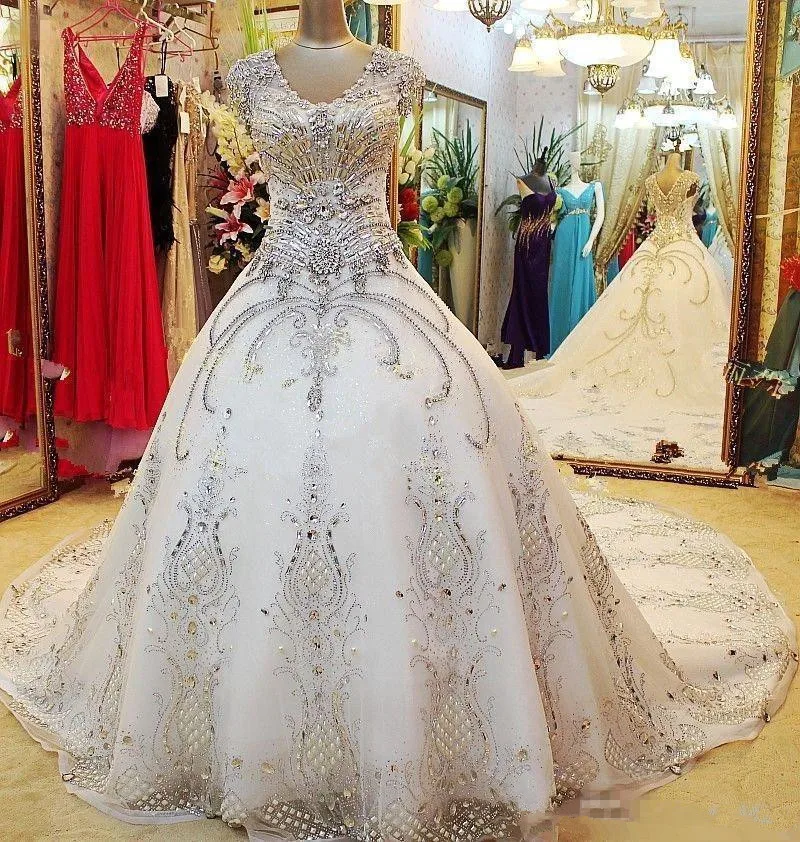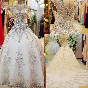 Special Offer فساتين زفاف فاخرة كريستال الأميرة سباركلي 2020 قطعة علوية بأكمام قصيرة وفتحة رقبة على شكل حرف V الأكمام قطار مصلى حجر الراين مطرز الكنيسة حديقة... Discount 0% Today!