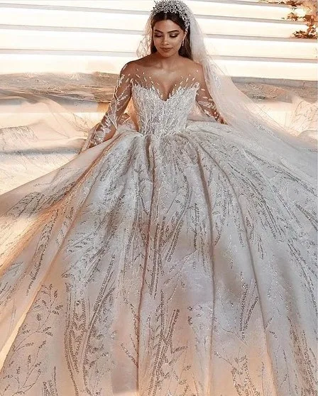 Special Offer 2020 مخصص الأميرة فساتين الزفاف Vestido De Casamento الذهب يزين الخرز كم طويل زي العرائس HA190 Discount 0% Today!