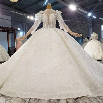 Special Offer فستان زفاف فاخر 2021 كريستال العربية فستان الزفاف لامعة الخرز الكرة ثوب عالية الرقبة فستان زفاف Vestidos De Novia Discount 19% Today!