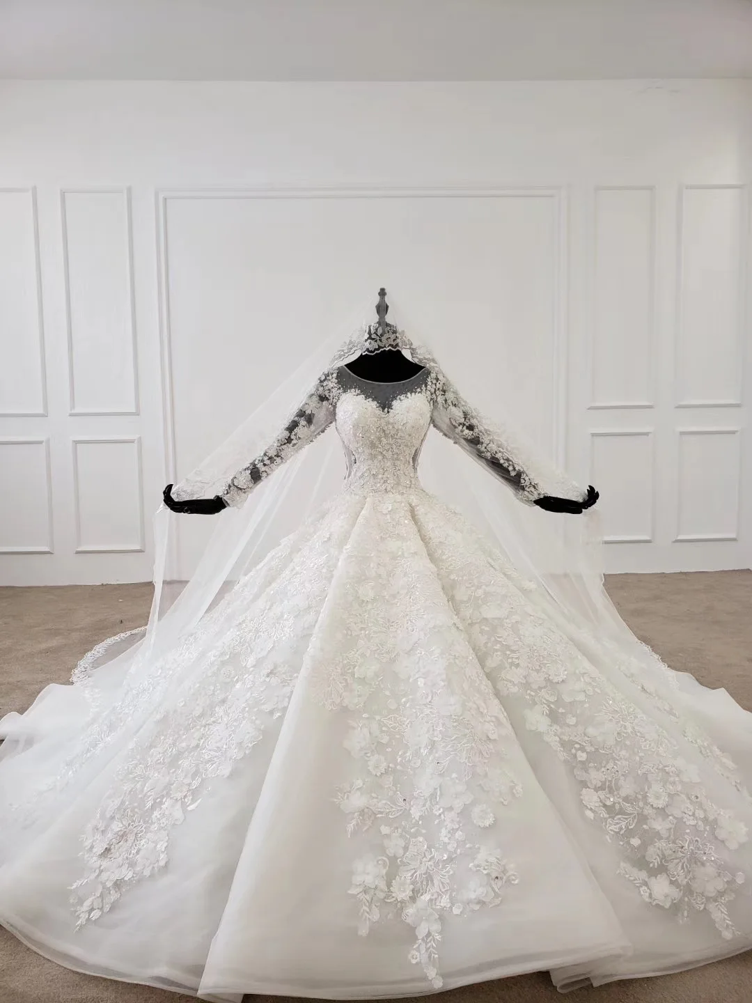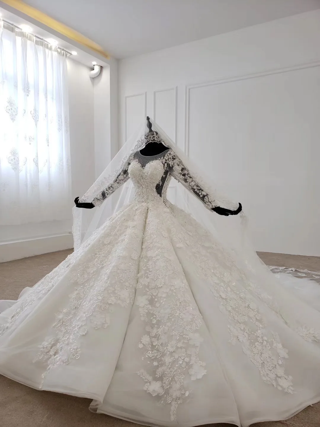 Special Offer ثوب حفلة فاخر سويت هارت منفوش قطار كبير تول دانتيل زهور زينة مطرز فساتين زفاف رسمية فاخرة زي العرائس Discount 20% Today!