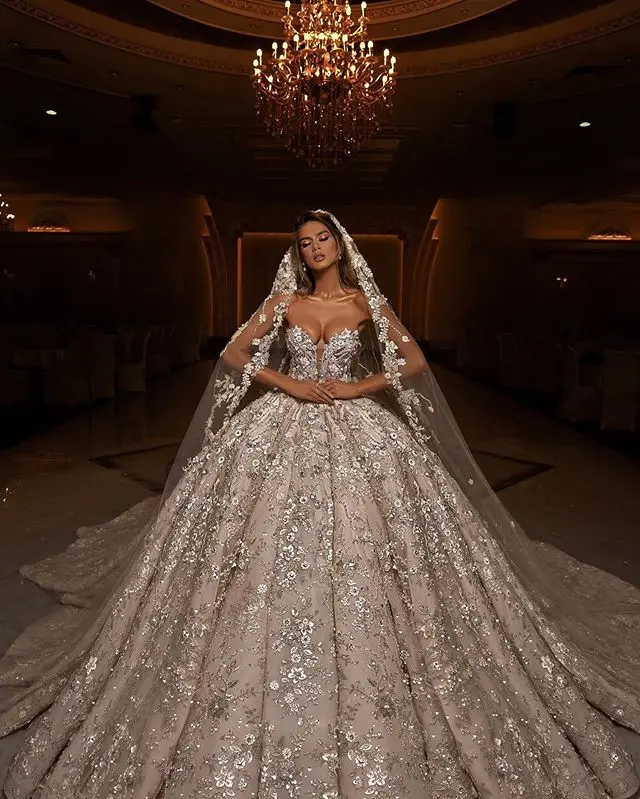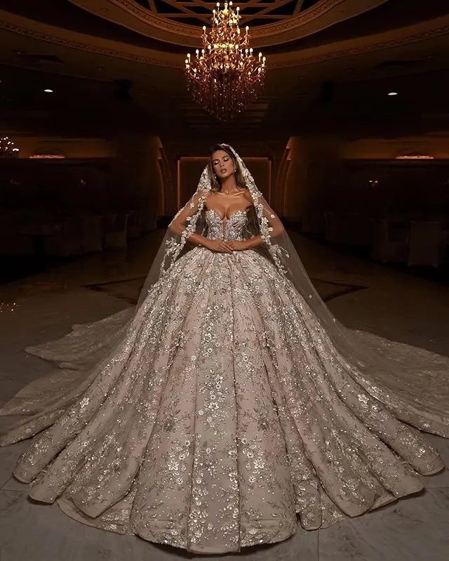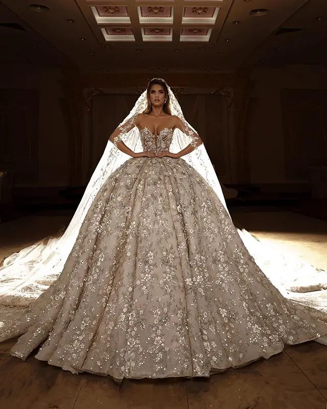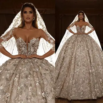 Special Offer فاخر مطرز بالخرز فستاين سهرة/فساتين الحفلات فساتين زفاف زهرة سباركلي ترتر حبيب دبي فستان زفاف عربي رداء دي ماري Discount 4% Today!