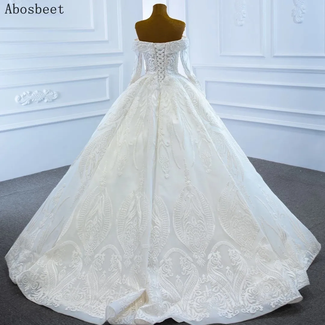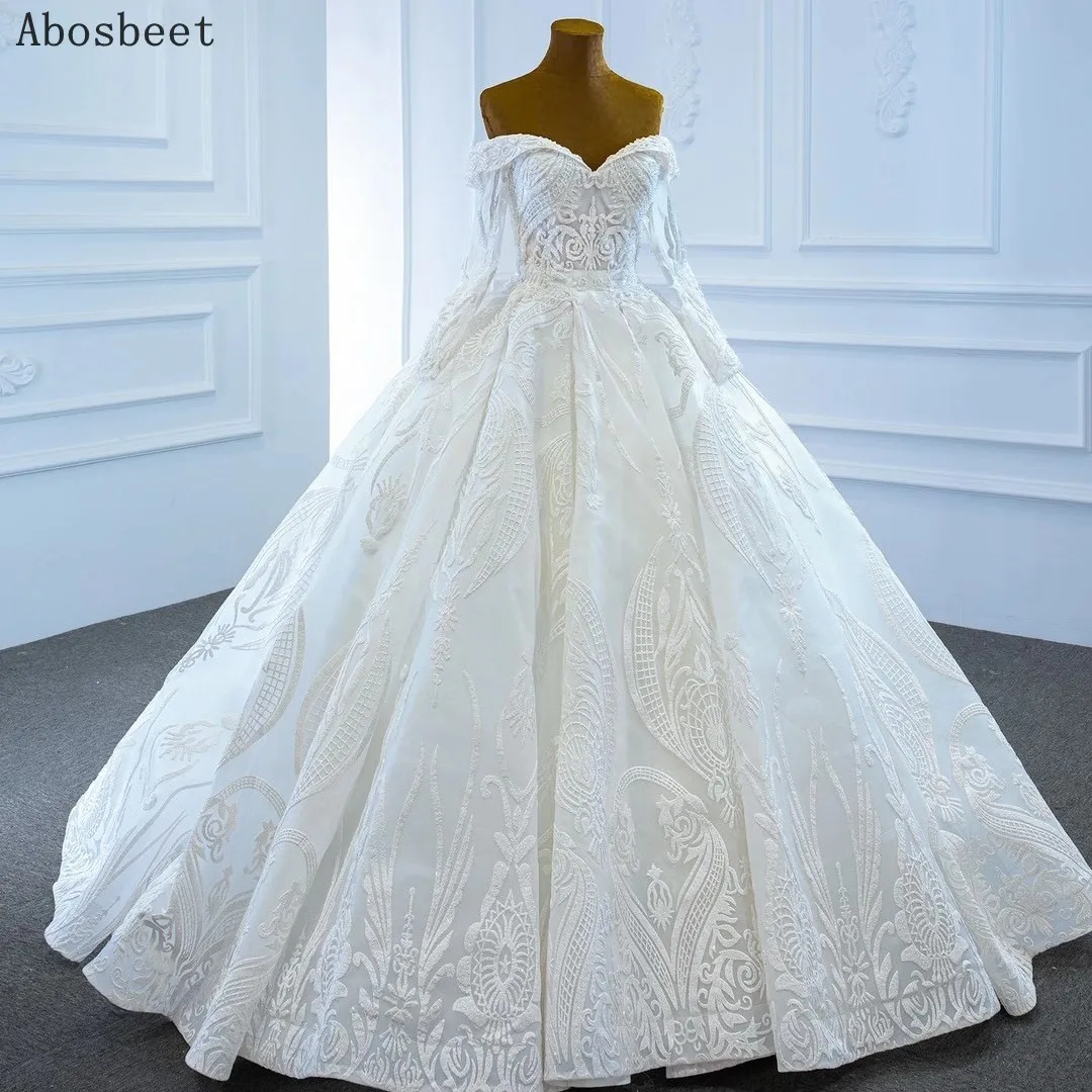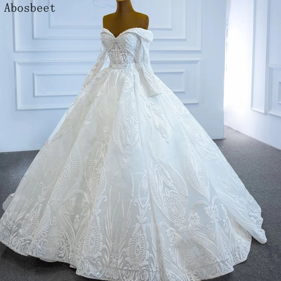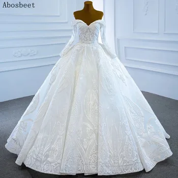 Special Offer أنيقة الكرة ثوب الزفاف كم طويل الحبيب التطريز الدانتيل مع الخرز قطار صغير ثوب زفاف أبيض النساء الزفاف Discount 5% Today!