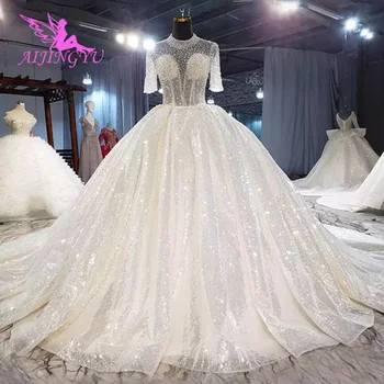 Special Offer AIJINGYU فساتين للنساء الثياب السمينة السعر رداء المرأة 2021 فستان زفاف دانتيل فستان الزفاف مع قطار طويل Discount 0% Today!