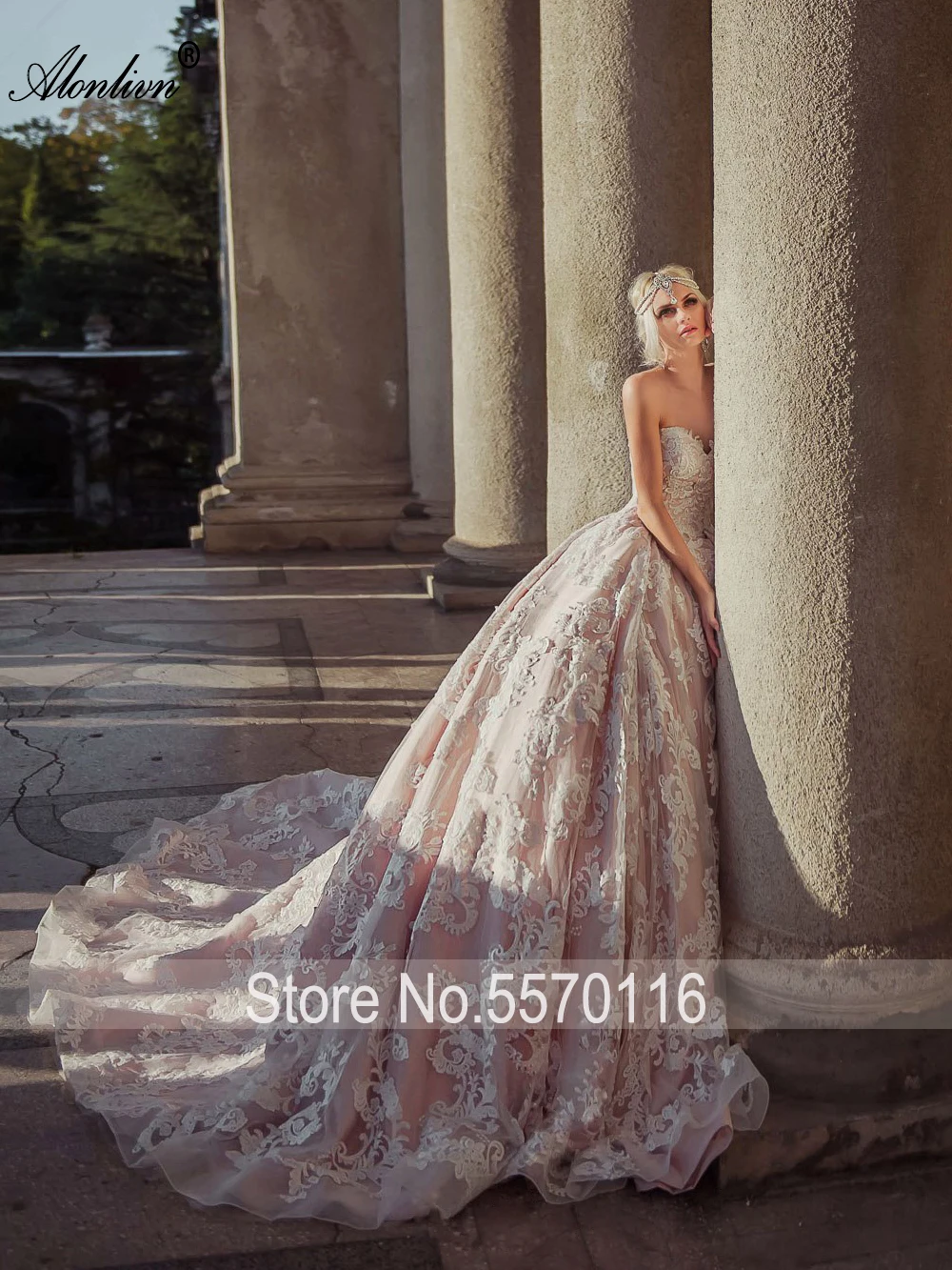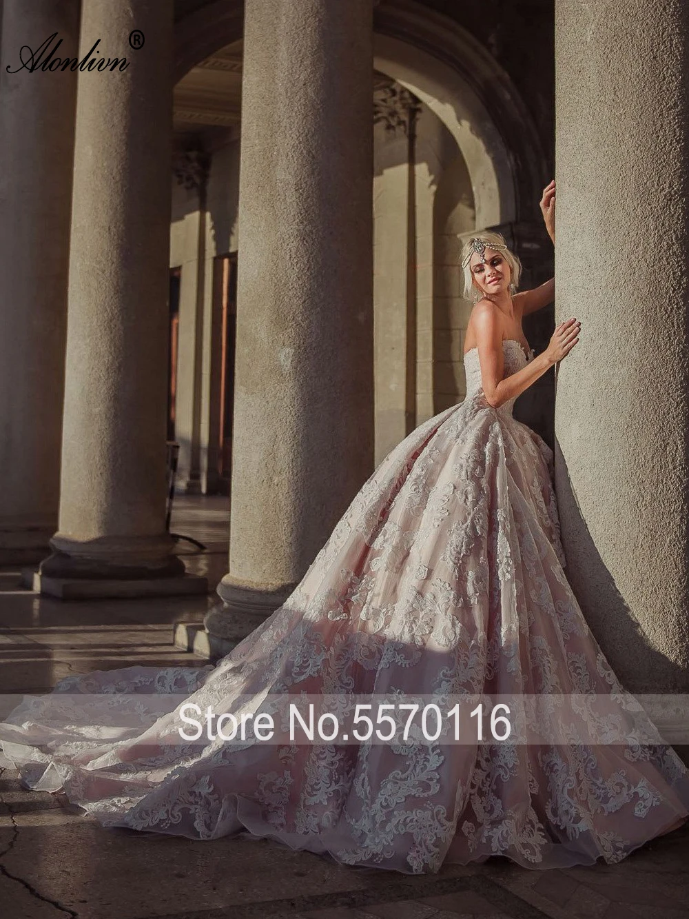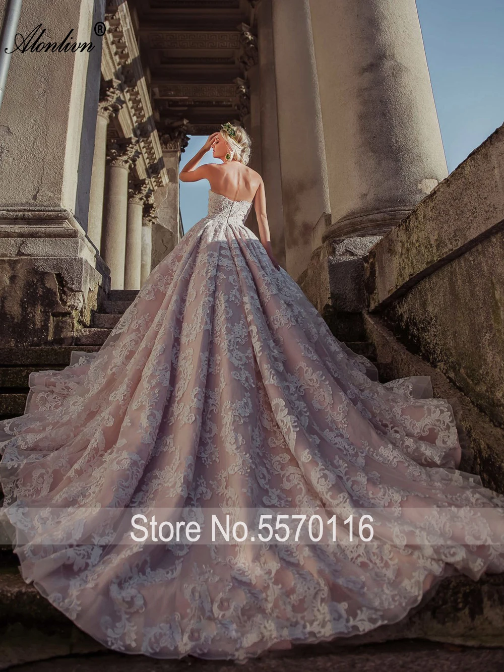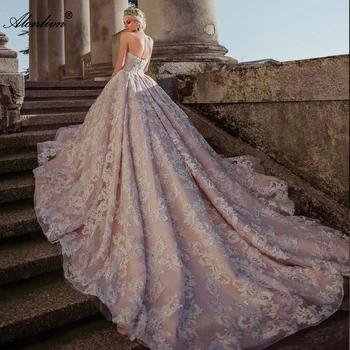 Special Offer Alonlivn لامعة الدانتيل يزين الحبيب الكرة ثوب الأميرة فساتين الزفاف التطريز قطار طويل زي العرائس Discount 25% Today!