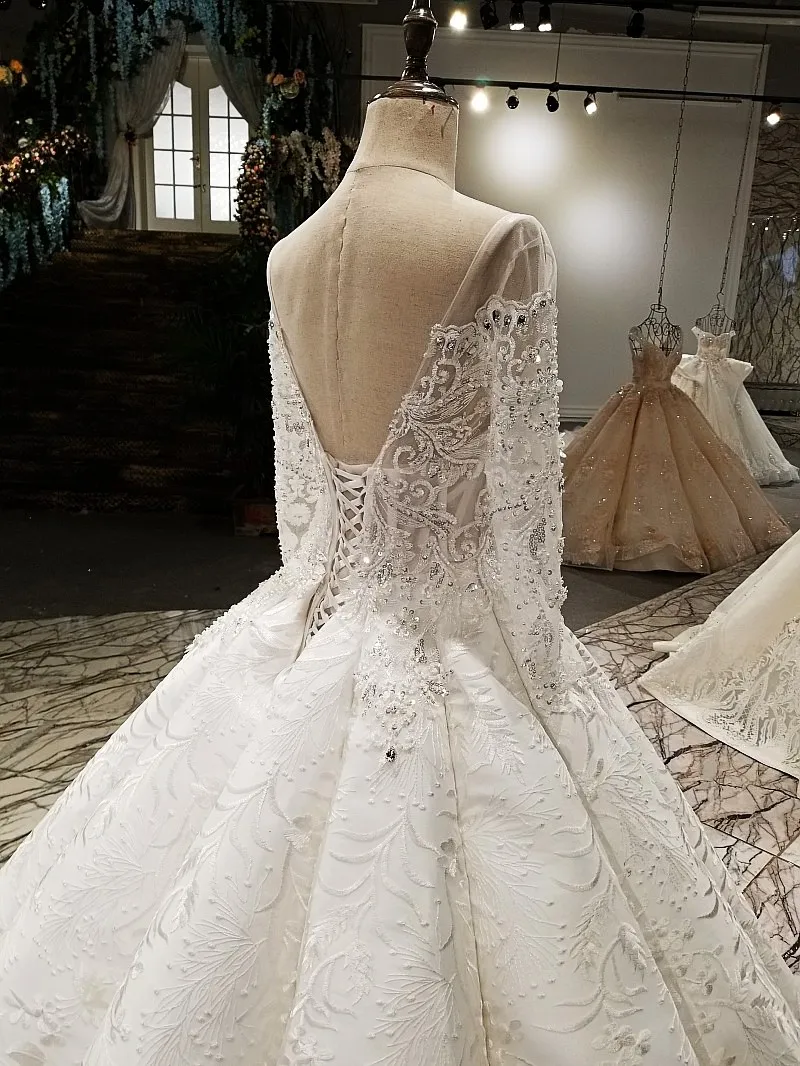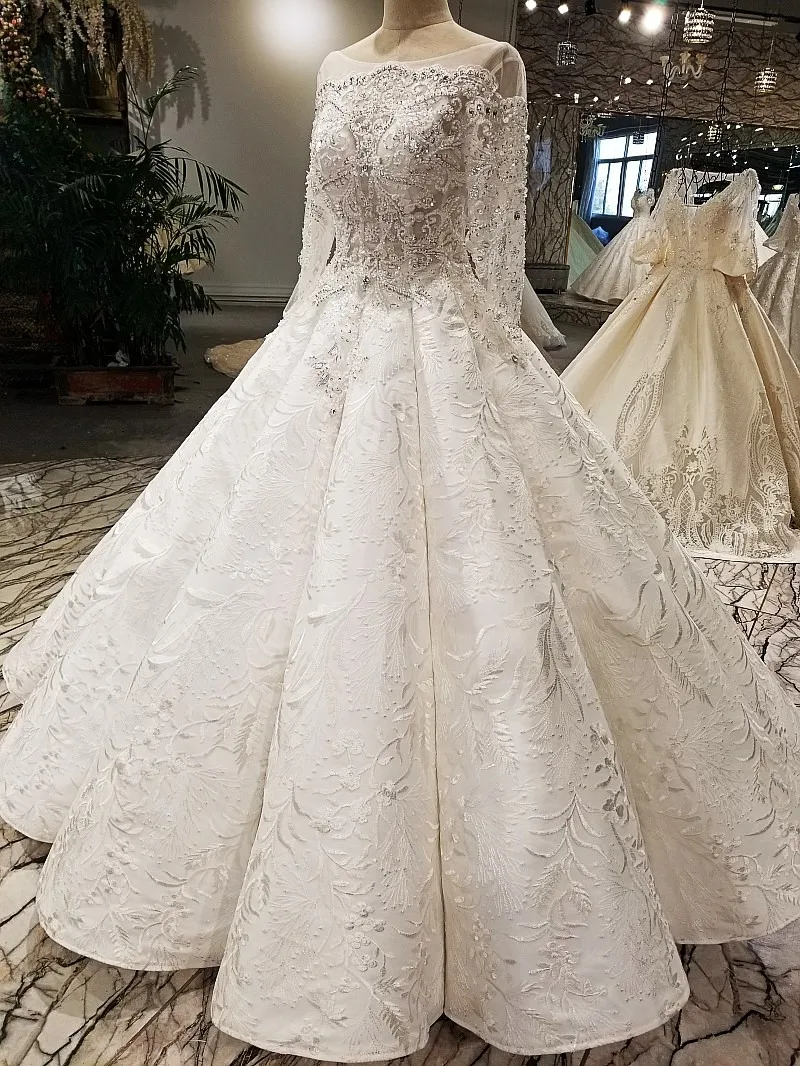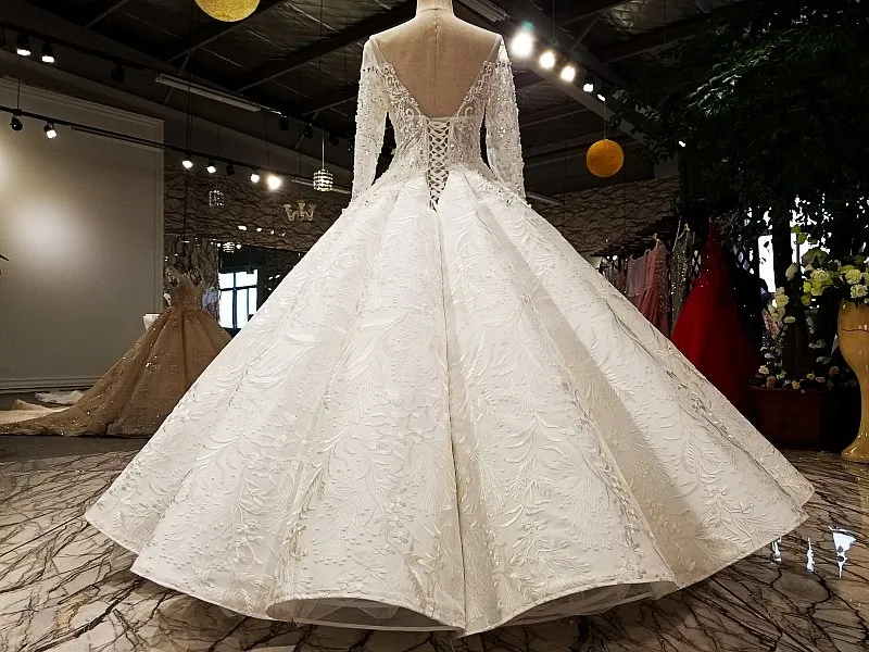 Special Offer BGW HT4810 فساتين زفاف فاخرة كم كامل قارب الرقبة الكرة ثوب اليدوى أنيقة الزفاف فساتين الزفاف طول الأرض صور حقيقية Discount 56% Today!