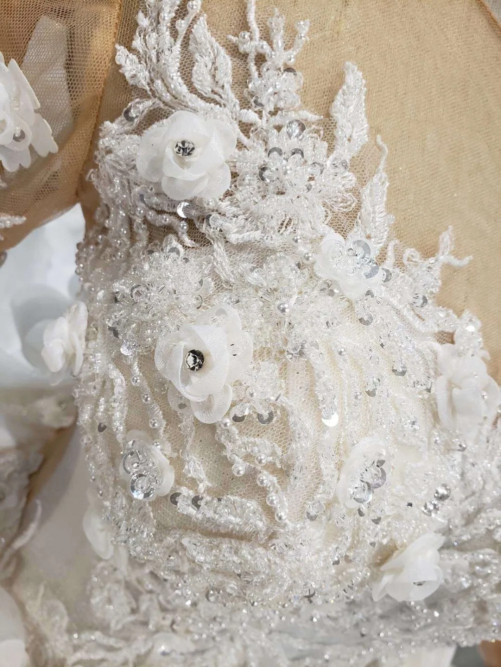 Special Offer CloverBridal مثير الفاخرة الكشكشة يدوية الورود اللؤلؤ الدانتيل يزين الأحجار قصيرة الأكمام تسلق الدانتيل الزفاف اللباس 2019 Discount 0% Today!