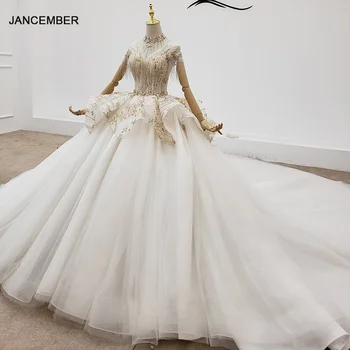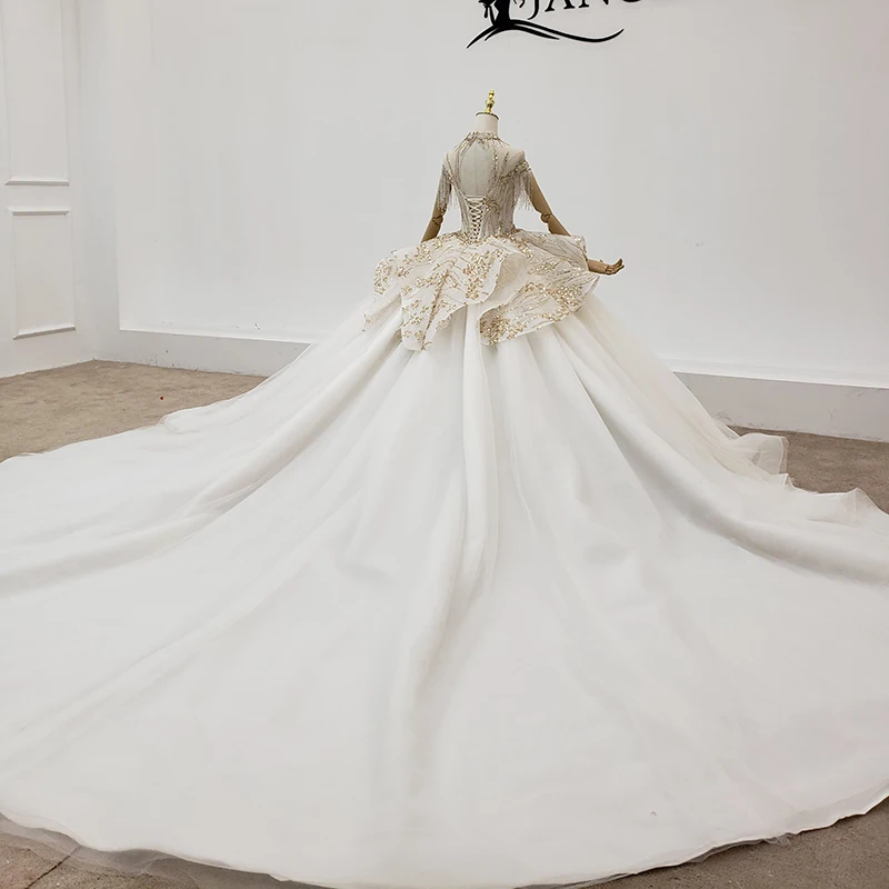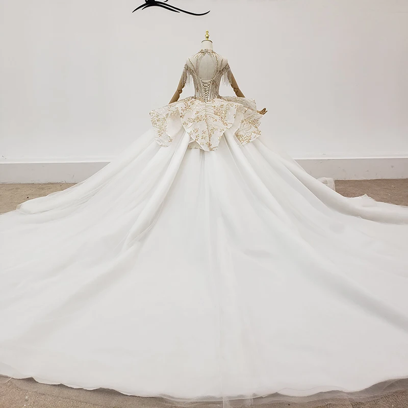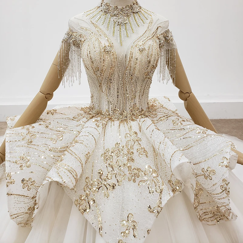 Special Offer HTL1454 فستان الزفاف شرابة ثوب زفاف الرقبة اللؤلؤ مع حجر الراين بالإضافة إلى حجم الذهب الترتر زين فساتين عروس Discount 55% Today!