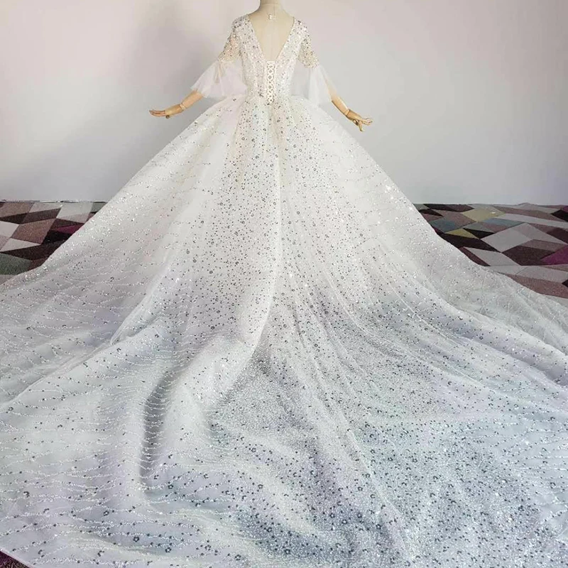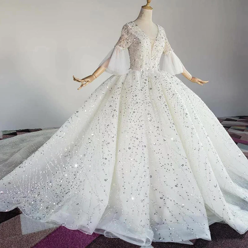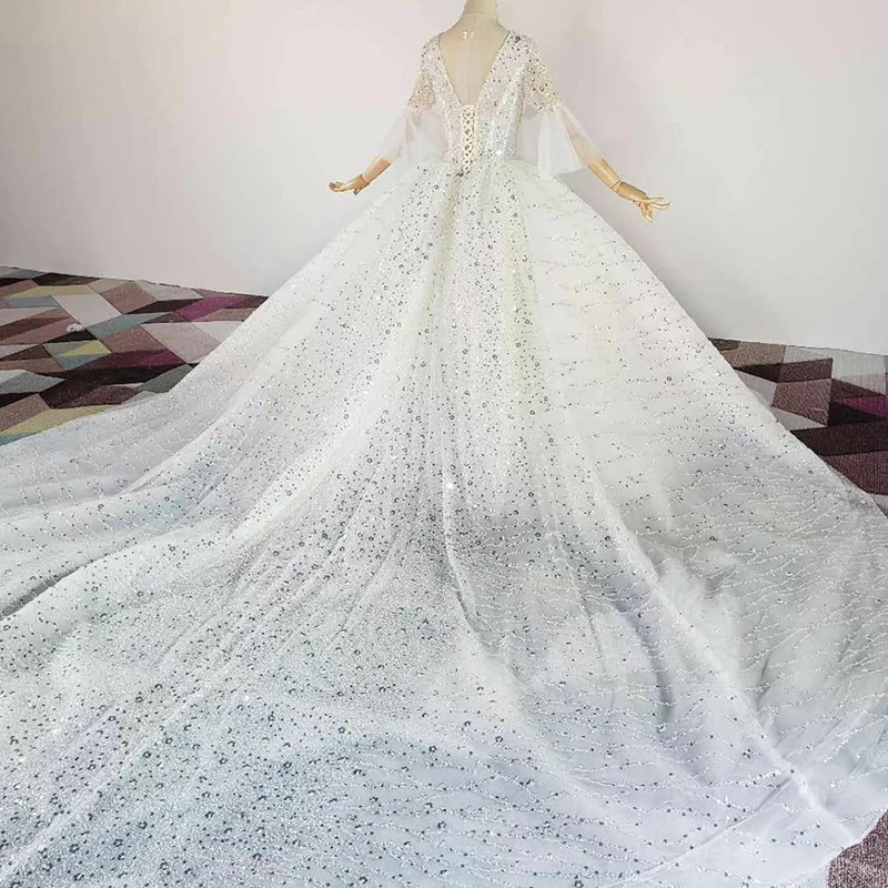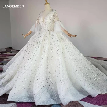 Special Offer HTL1860 مطرز بالخرز فستان الزفاف 2020 مضيئة نصف كم زين فستاين سهرة/فساتين الحفلات كريستال عميق رقبة V Discount 55% Today!