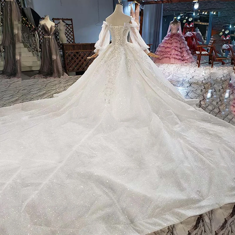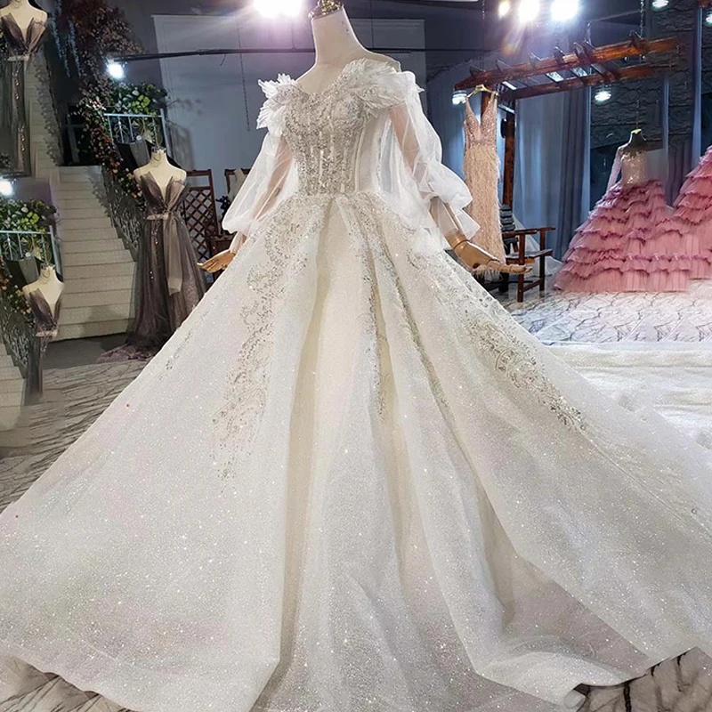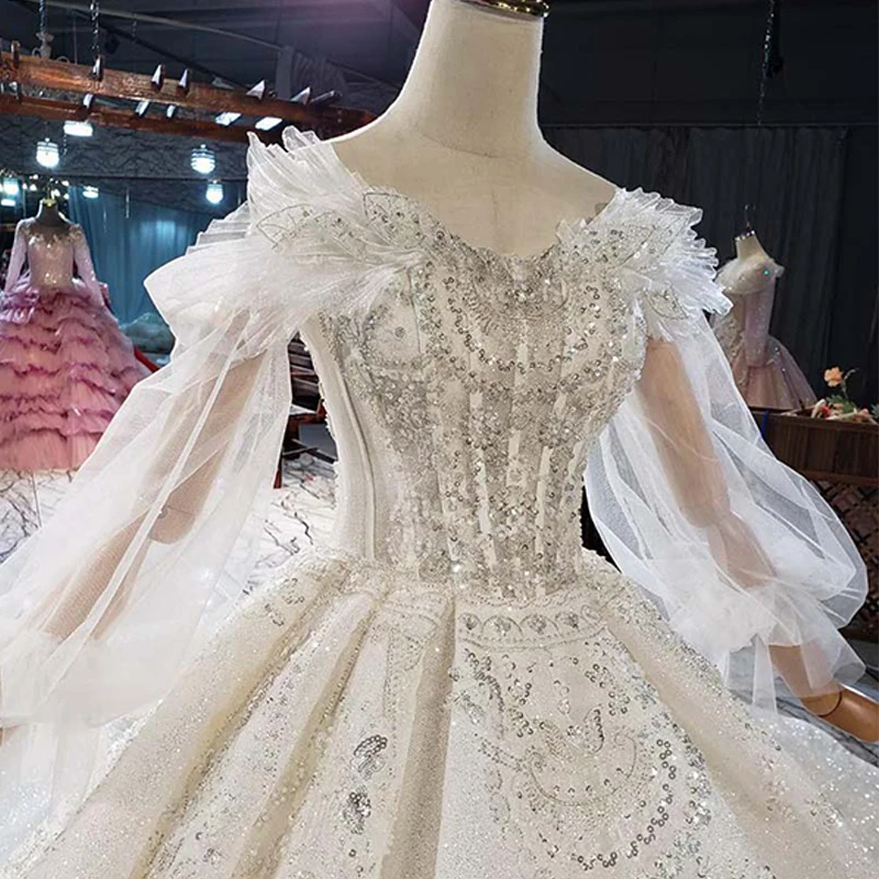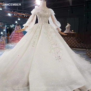 Special Offer HTL1869 فستان زفاف فاخر وأنيق على شكل حرف V كريستال مطرز بالخرز 2020 فستاين سهرة/فساتين الحفلات كم طويل مضيئة Discount 55% Today!