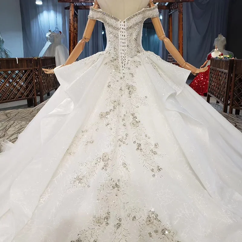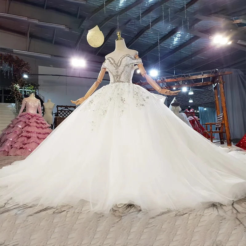 Special Offer HTL1896 فاخر مطرز بالخرز كريستال فستان الزفاف 2020 عميق رقبة V قصير الأكمام فستاين سهرة/فساتين الحفلات بأربطة من الخلف Discount 55% Today!