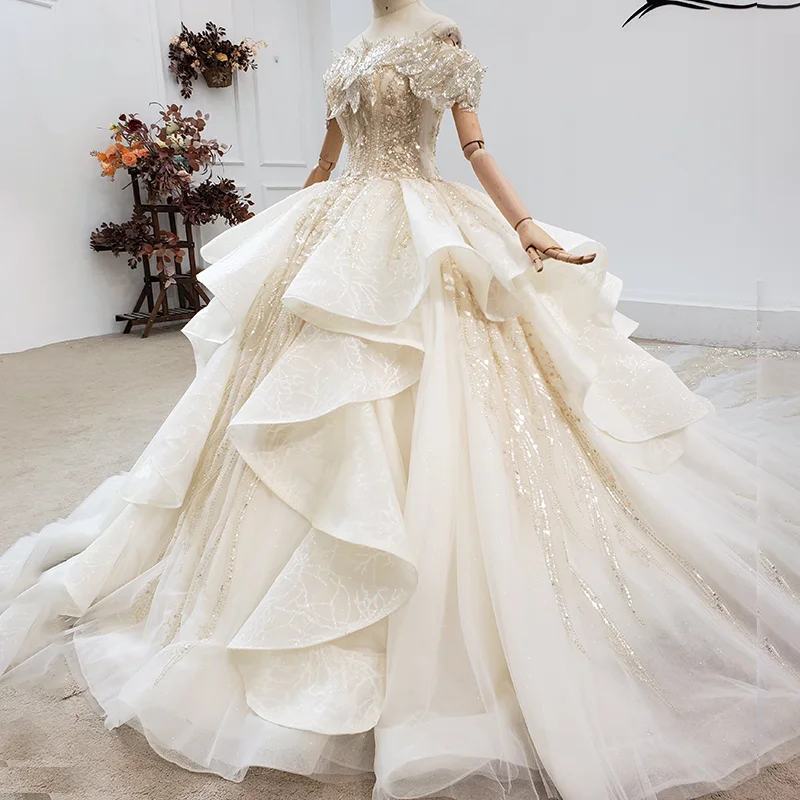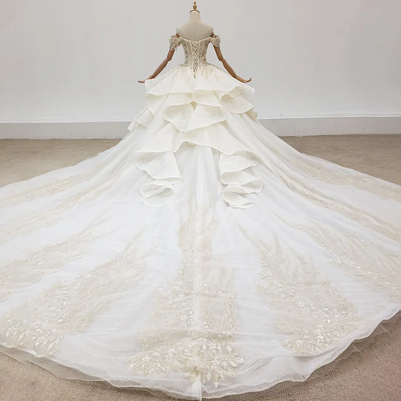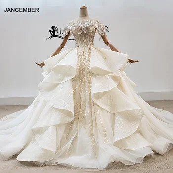 Special Offer فستان زفاف فاخر مطرز بكريستال من HTL1916 فستان زفاف 2020 بأكمام طويلة ورقبة قارب بأربطة من الخلف على الكتف Discount 55% Today!