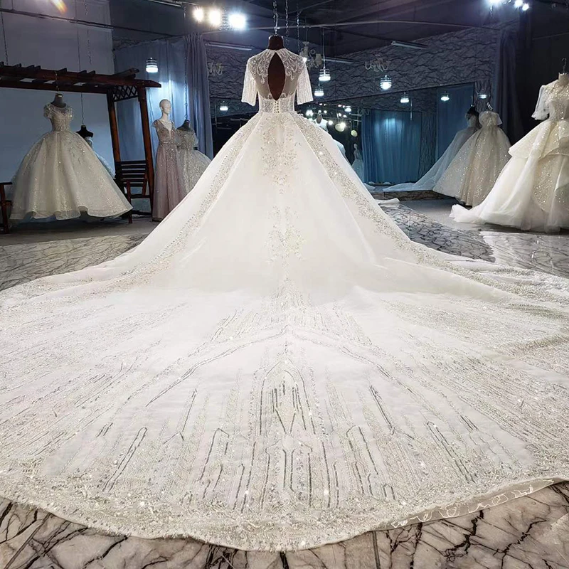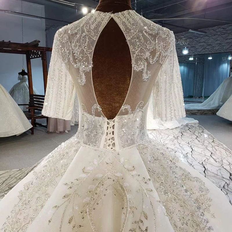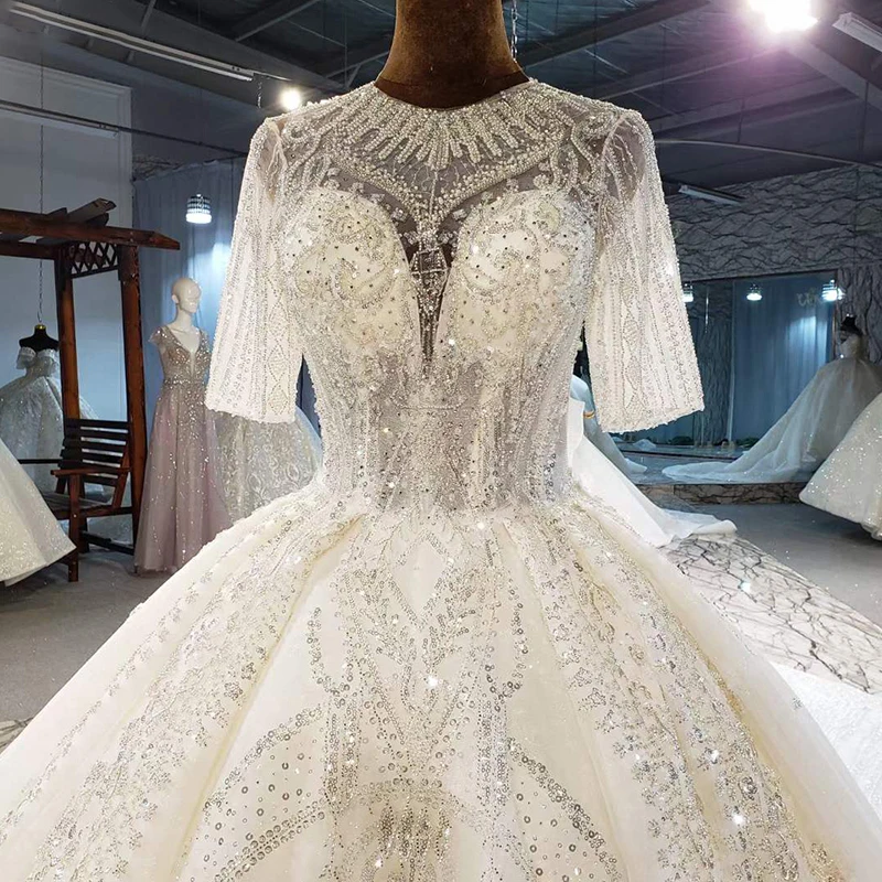 Special Offer فستان زفاف فاخر مطرز بالكريستال مطرز بالخرز من HTL2039 فستان زفاف 2021 نصف كم برقبة دائرية وأربطة من الخلف Discount 55% Today!