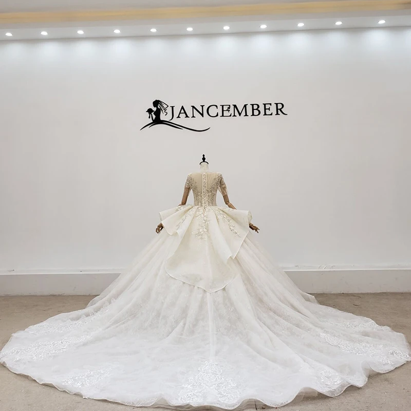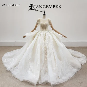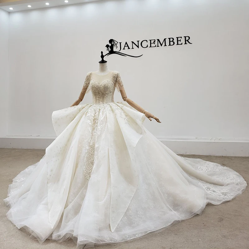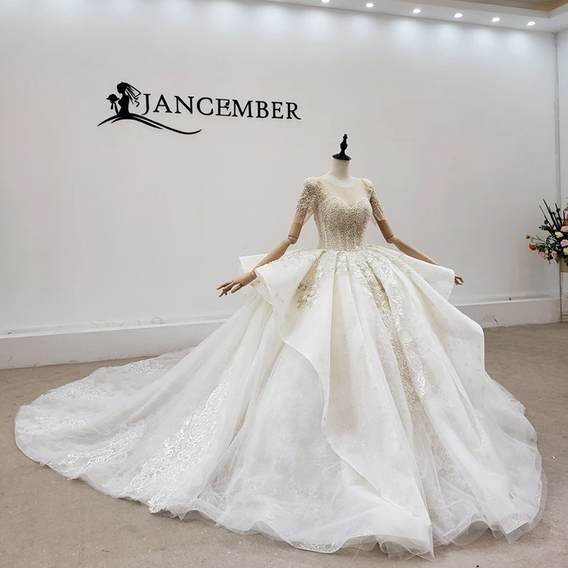 Special Offer فستان زفاف HTL2074 مثير بياقة على شكل حرف V مطرز بكريستال فاخر مطرز بالترتر 2021 برباط من الخلف بأكمام قصيرة Discount 50% Today!