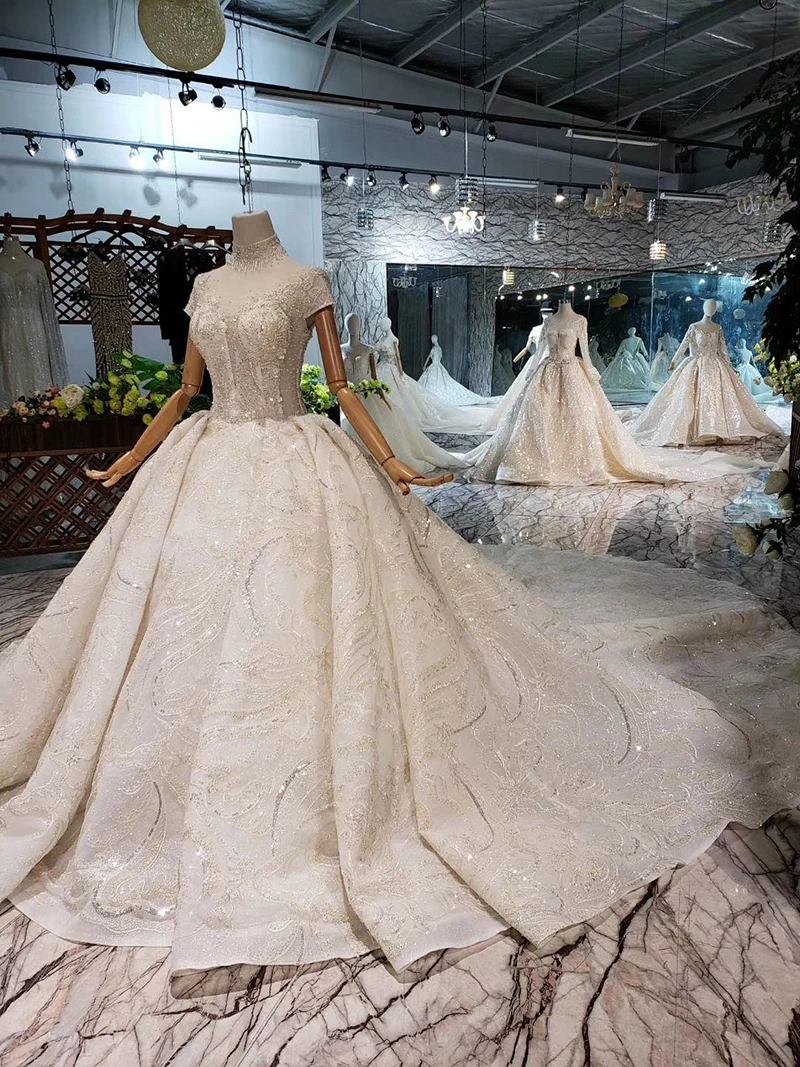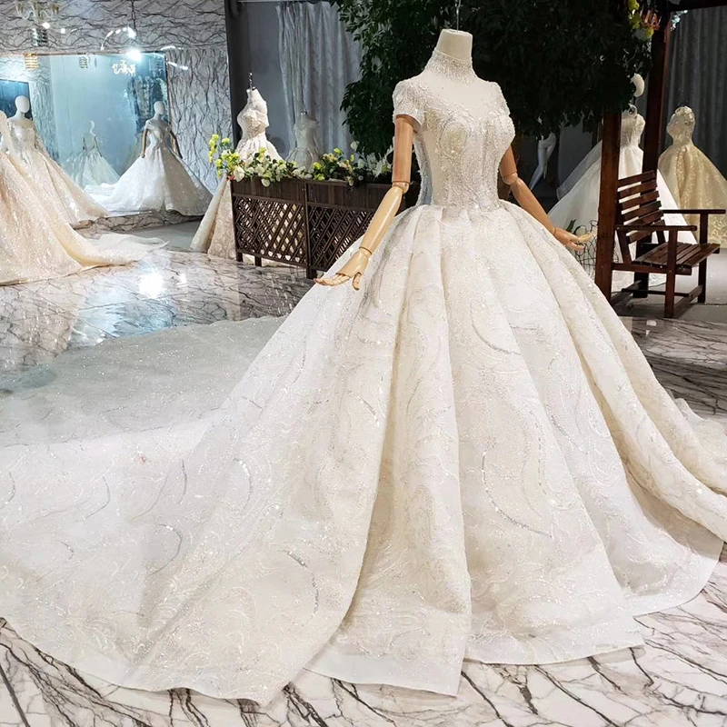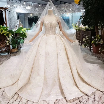 Special Offer LS20472 الفاخرة الزفاف فساتين مع الزفاف الحجاب عالية الرقبة قصيرة الأكمام الكرة ثوب ثوب زفاف свадебные платья больших размеров Discount 50% Today!