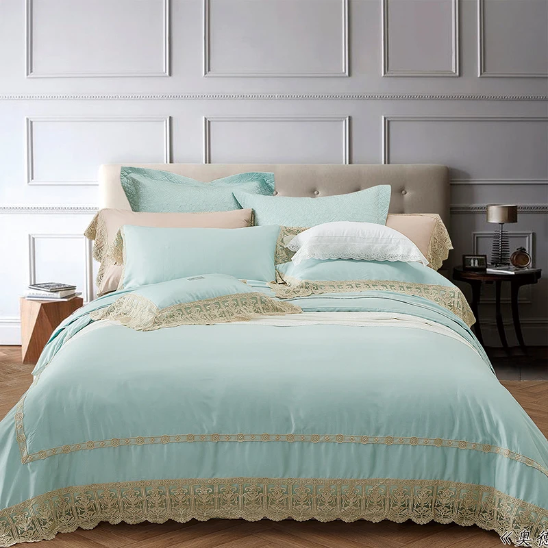 Special Offer الراقية الحرير التطريز الفراش أربع قطع مجموعة الراقية الفاخرة ايوسل الدانتيل ثمانية قطعة مجموعة مجاميع راحة الفراش الملك Discount 0% Today!