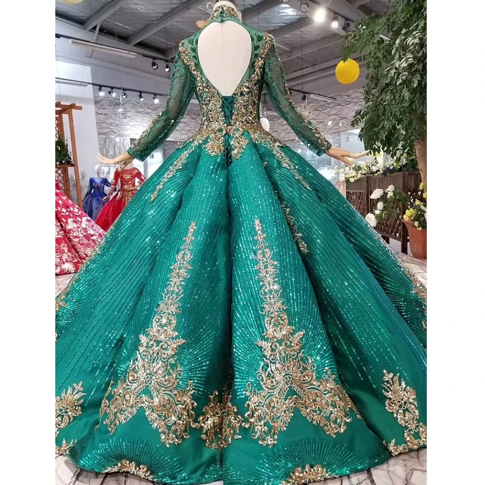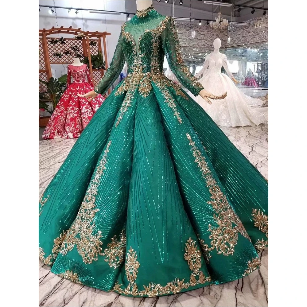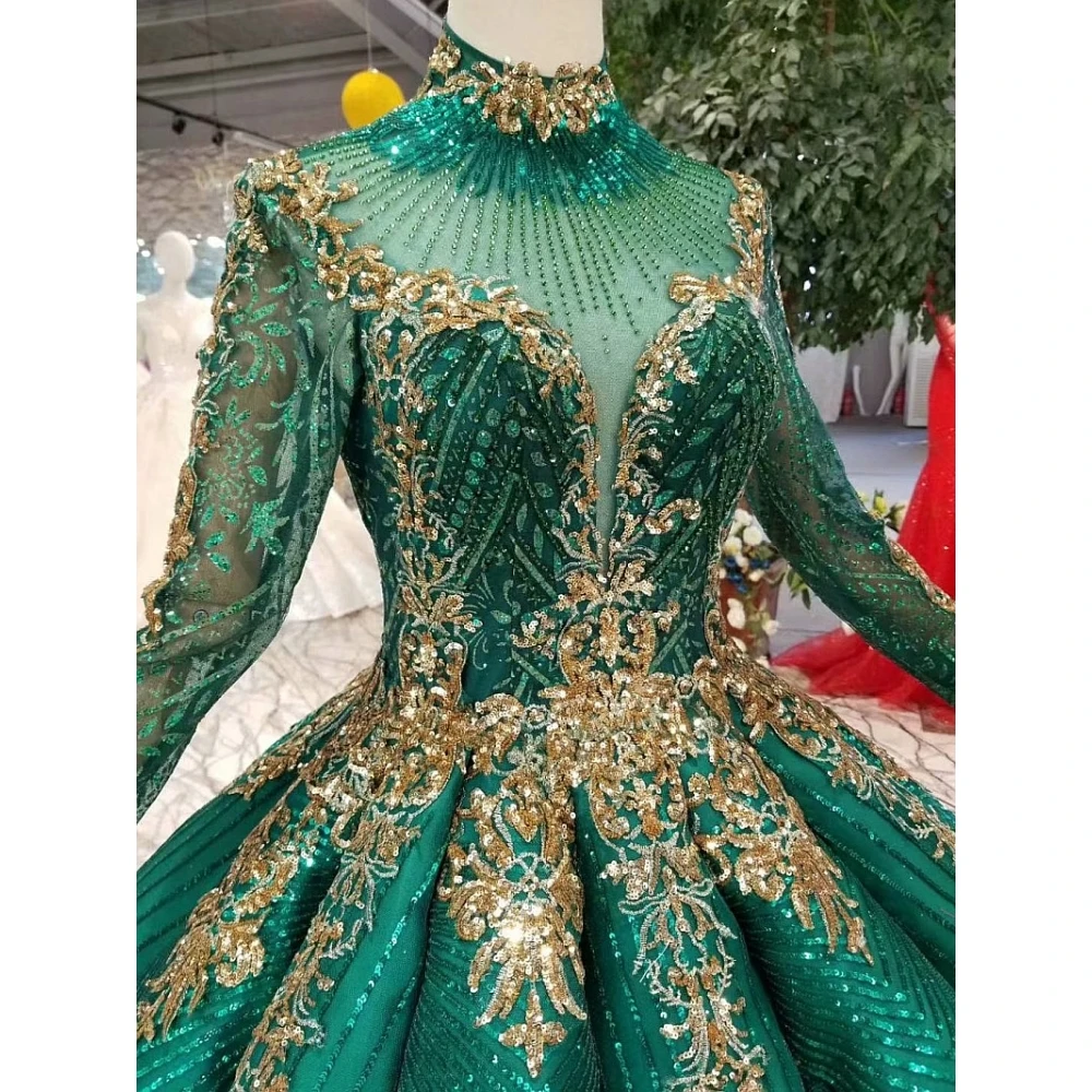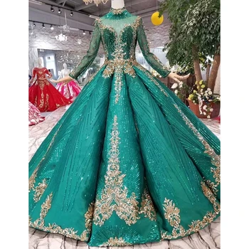 Special Offer الأخضر الفاخرة طويل كم اليدوية الدانتيل والتطريز الزفاف فستان زفاف Discount 0% Today!