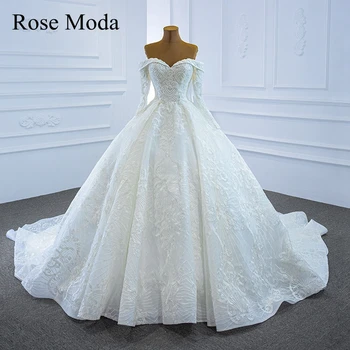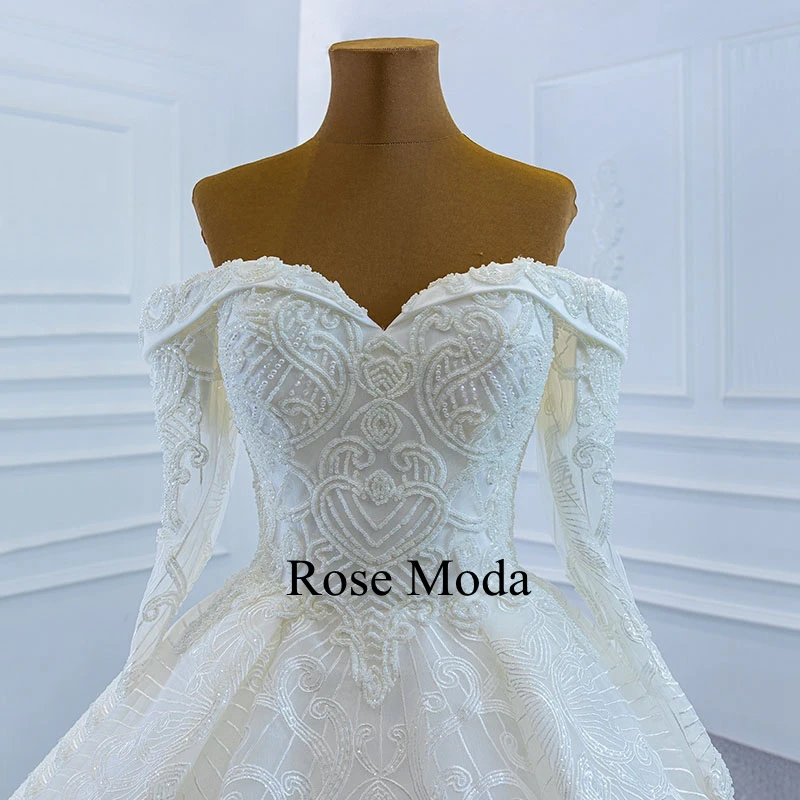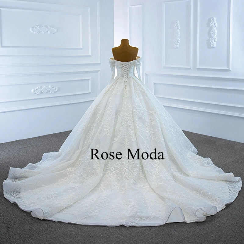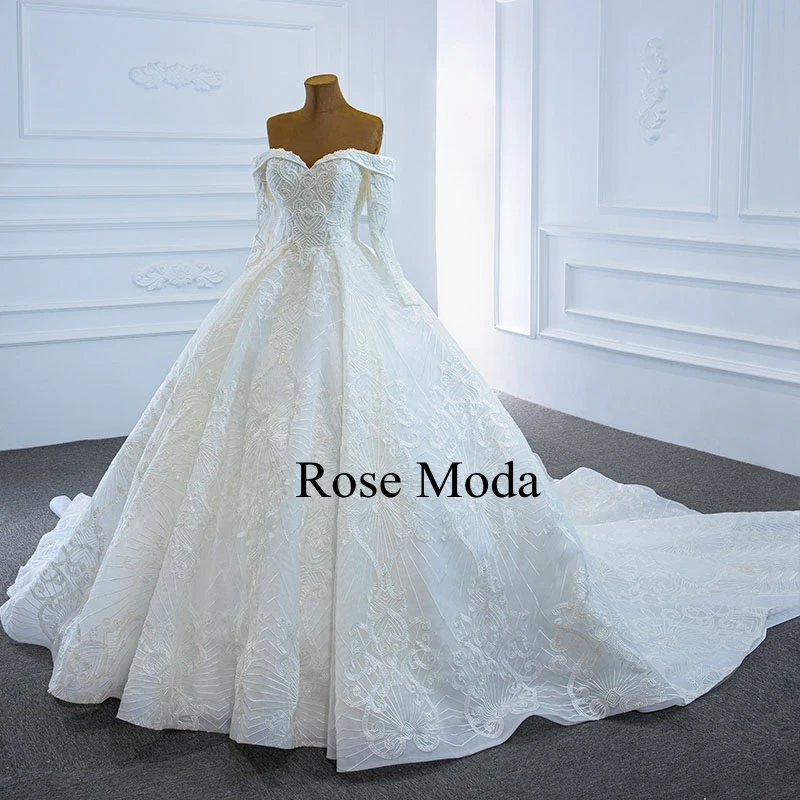 Special Offer فستان زفاف فاخر مكشوف الأكتاف بأكمام طويلة من الدانتيل من Rose Moda مصنوع حسب الطلب Discount 0% Today!