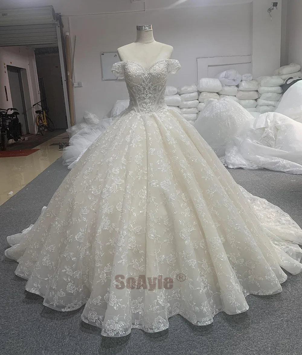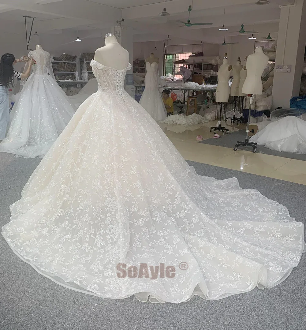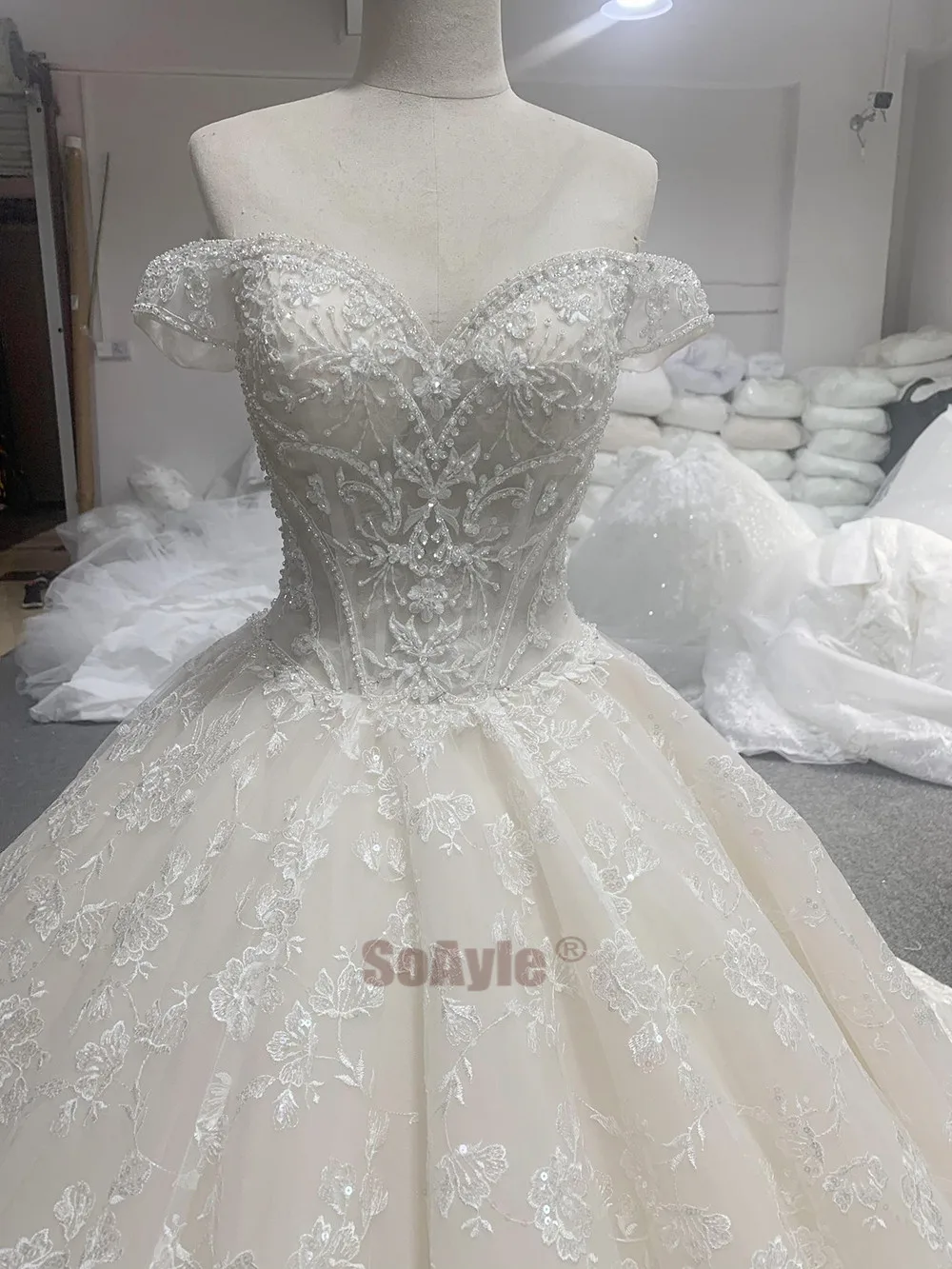 Special Offer SoAyle قبالة الكتف الدانتيل الشمبانيا فستان الزفاف الثقيلة الخرز الفاخرة ثوب الزفاف للنساء Vestido De Novia Discount 0% Today!