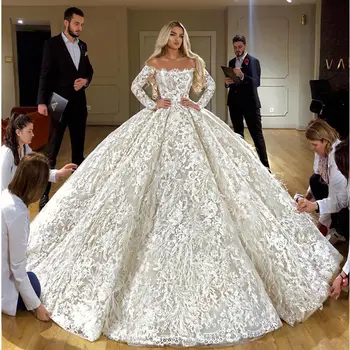 Special Offer Vestidos De Novia 2020 الدانتيل الكرة ثوب الزفاف الفاخرة طويلة الأكمام دبي فساتين الزفاف الريش رداء دي ماري Discount 35% Today!