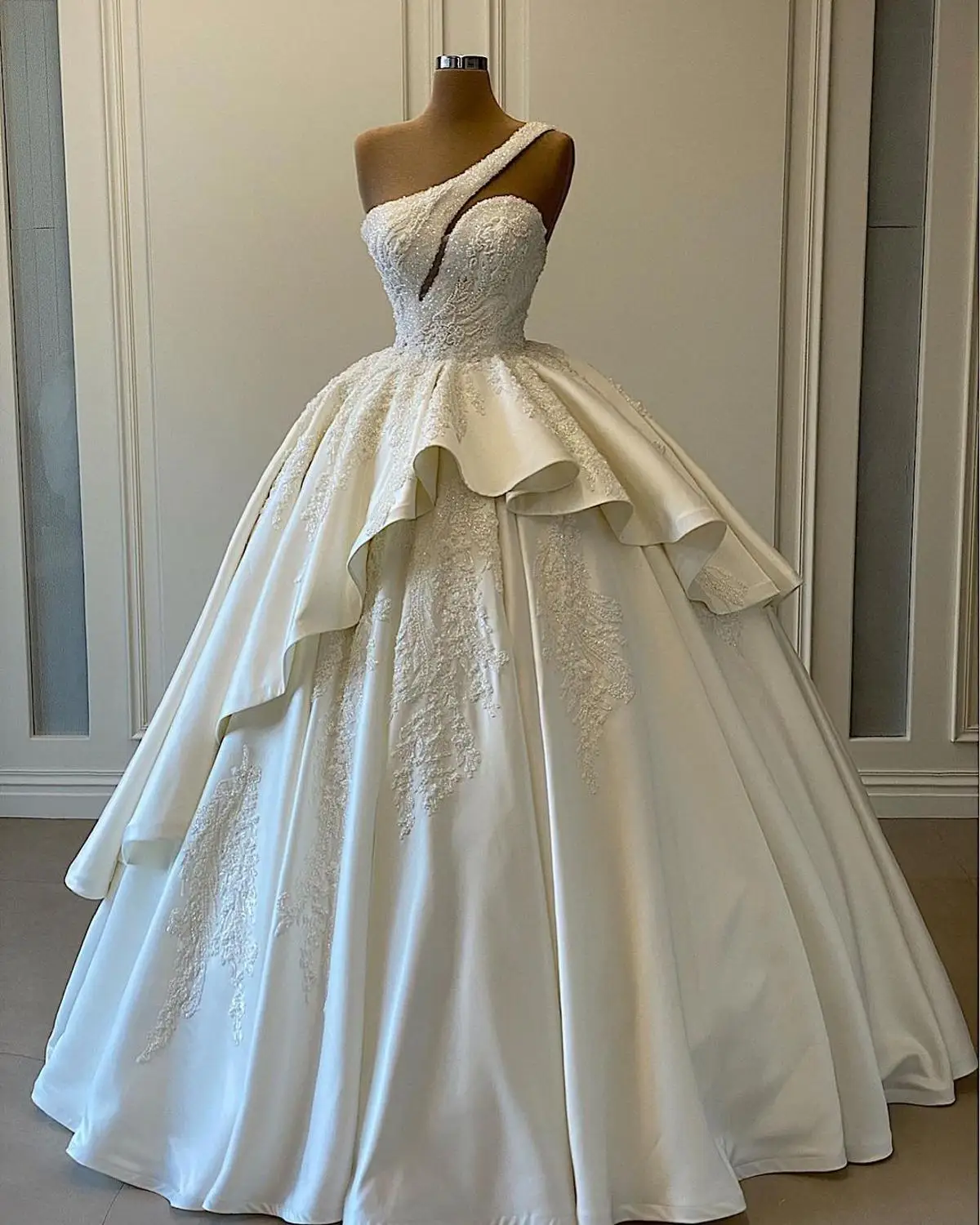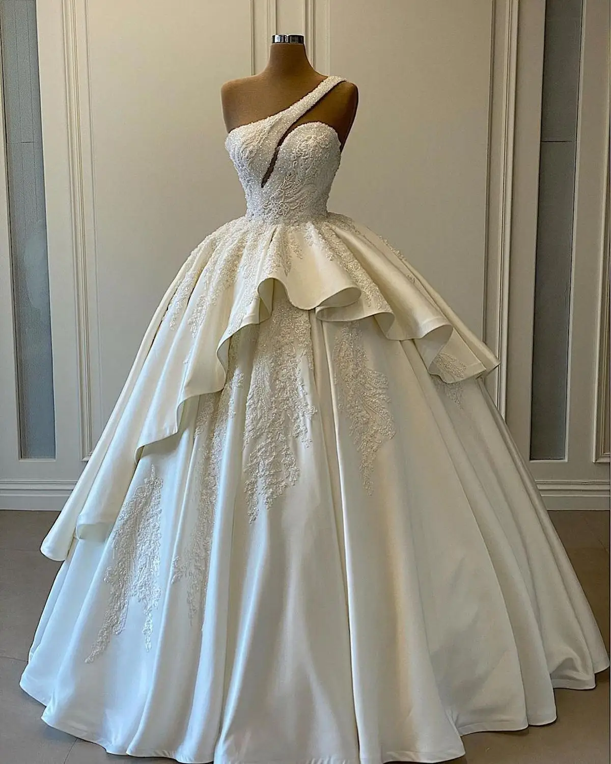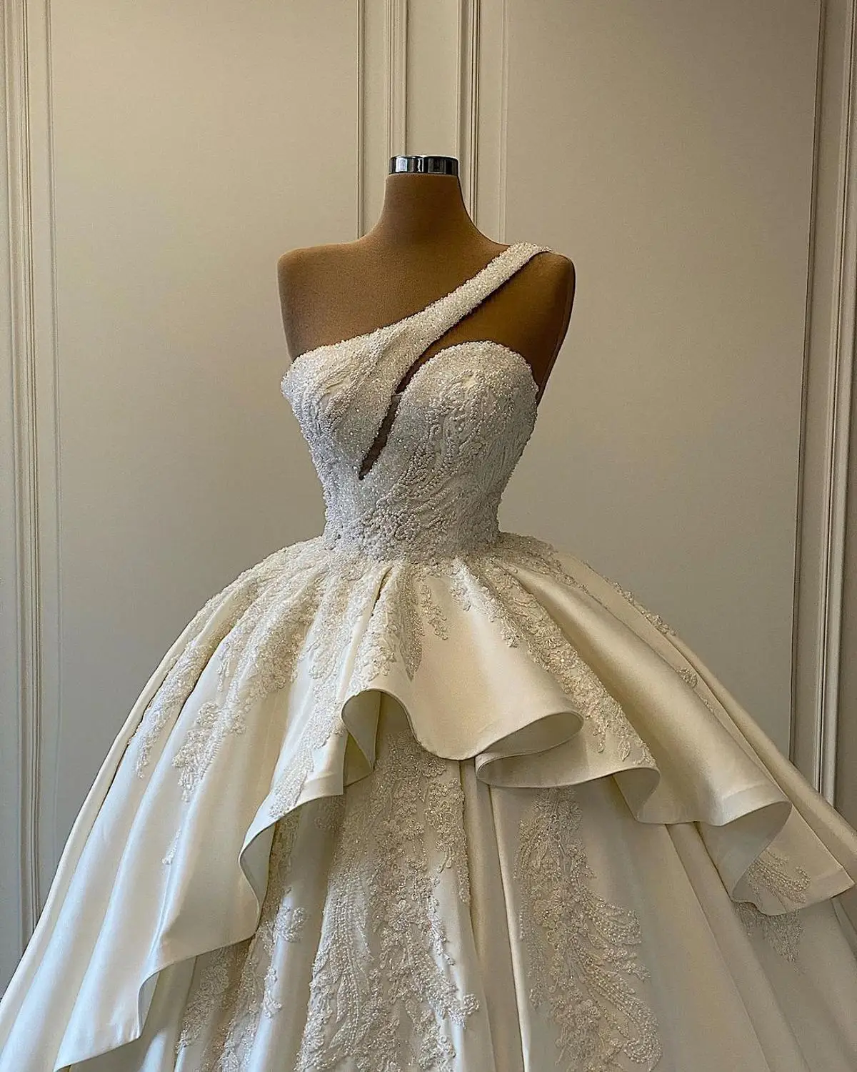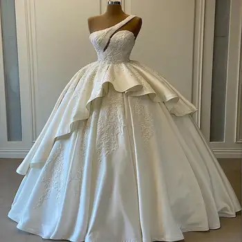 Special Offer فساتين زفاف من Vestidos De Novia 2021 بكتف واحد مطرز باللؤلؤ الكريستالي فساتين زفاف رداء دي ماري Discount 20% Today!