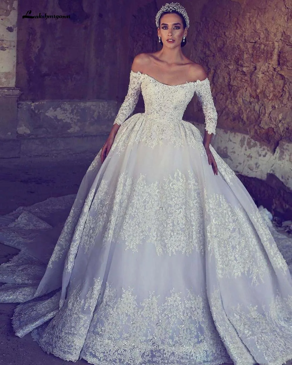 Special Offer فساتين زفاف فاخرة بطول الكاتدرائية بدون الكتف كريستال الأورجانزا أبريك دبي القلعة فساتين زفاف ترتر فيستدو دي نوفيا Discount 15% Today!