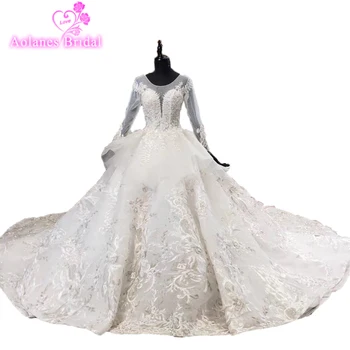 Special Offer أنيقة الوهم بلورات الخرز العمل الحقيقي فساتين زفاف خمر 2019 ثوب الكرة الفاخرة الدانتيل يزين فستان زفاف مخصص Discount 29% Today!