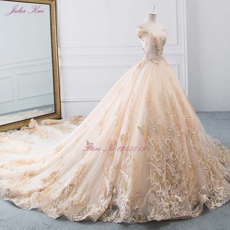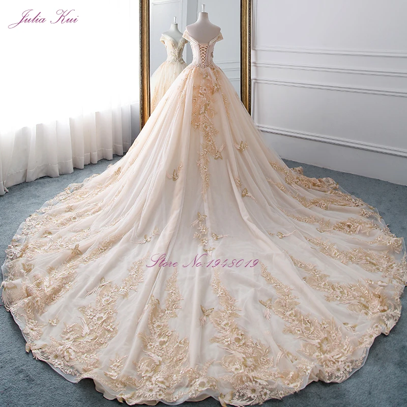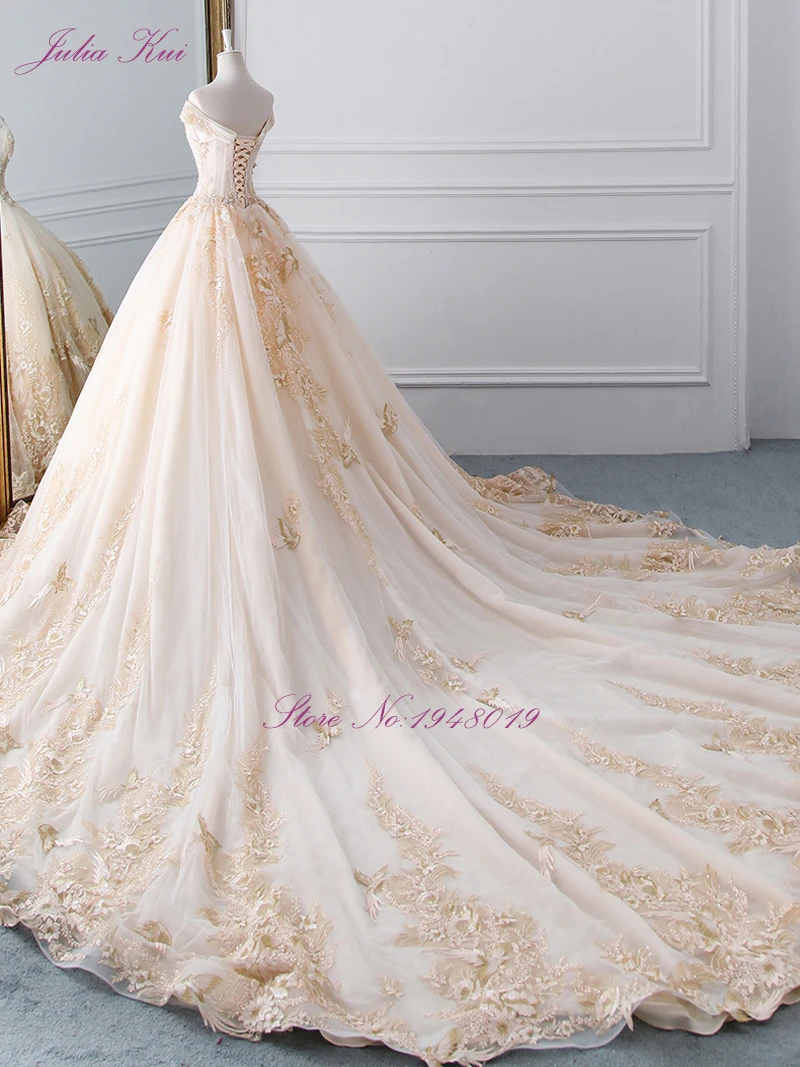 Special Offer جوليا كوي صور حقيقية فاخرة التطريز صدفي الكرة ثوب الزفاف 2019 الدانتيل يزين الدانتيل حتى مصلى قطار فستان زفاف Discount 30% Today!