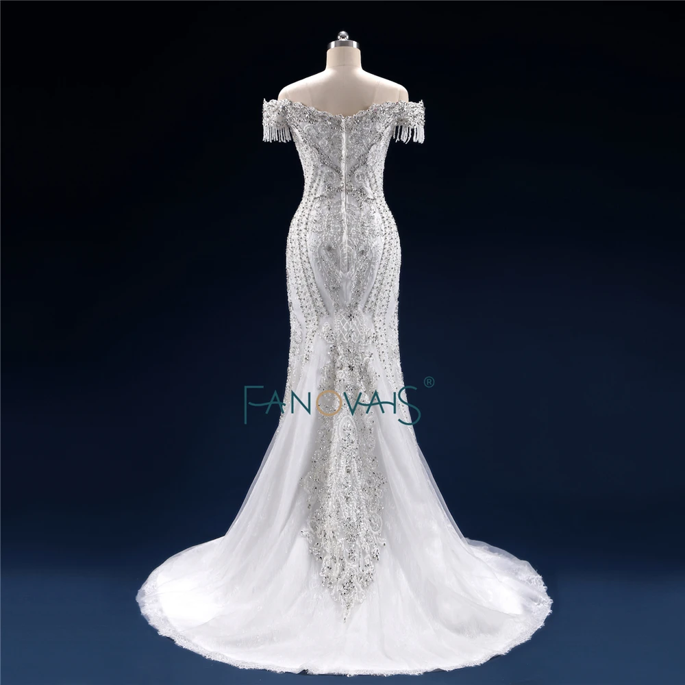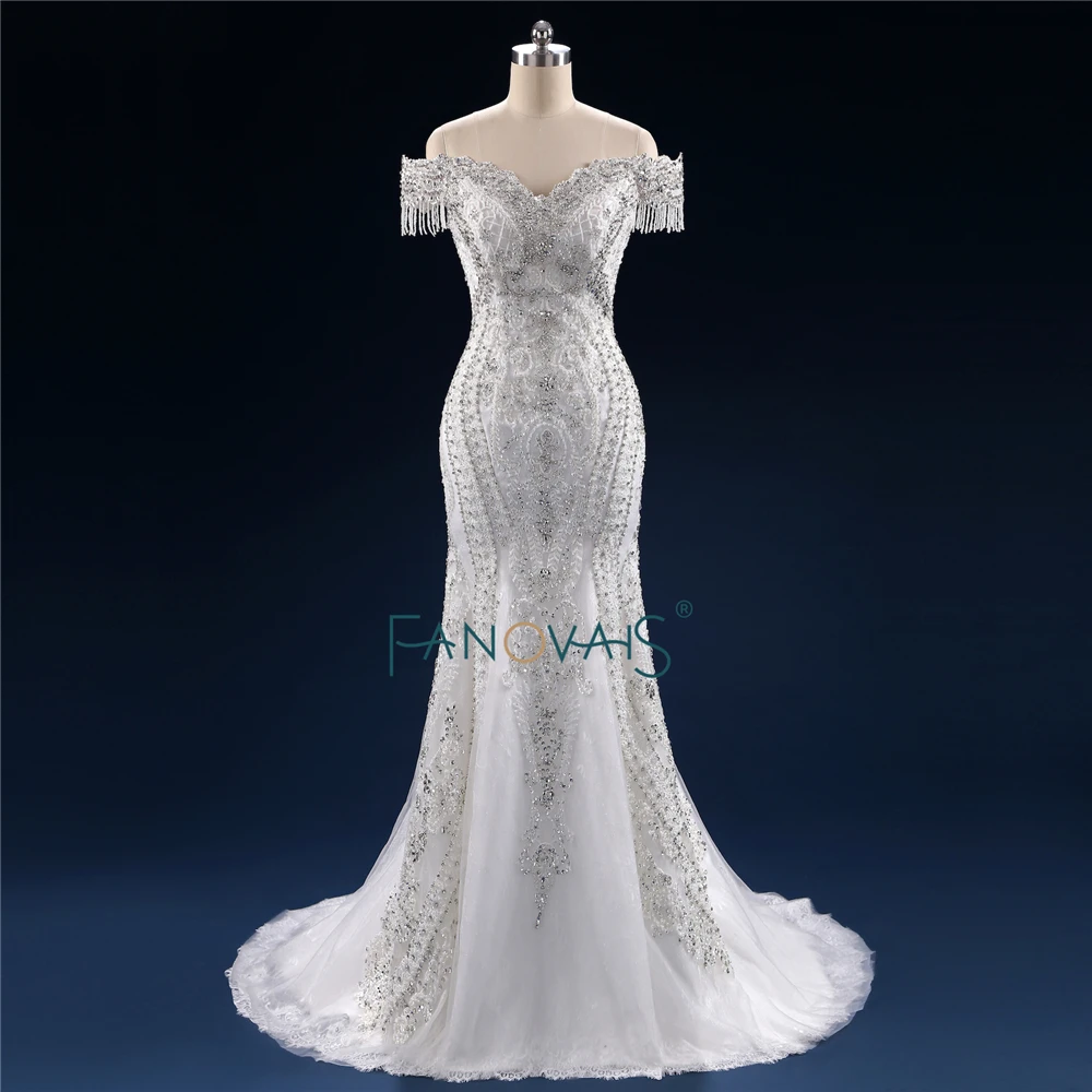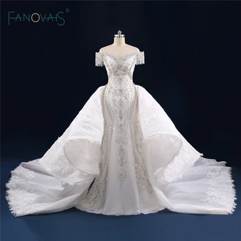 Special Offer فساتين زفاف فاخرة طويلة 2019 ثوب زفاف حورية البحر كريستال مطرز قابل للانفصال ذيل من الدانتيل فستان الزفاف البراق NW10 Discount 20% Today!